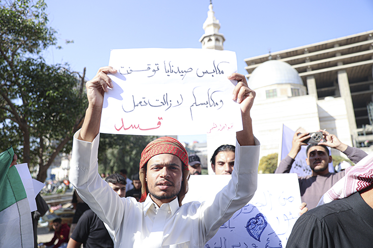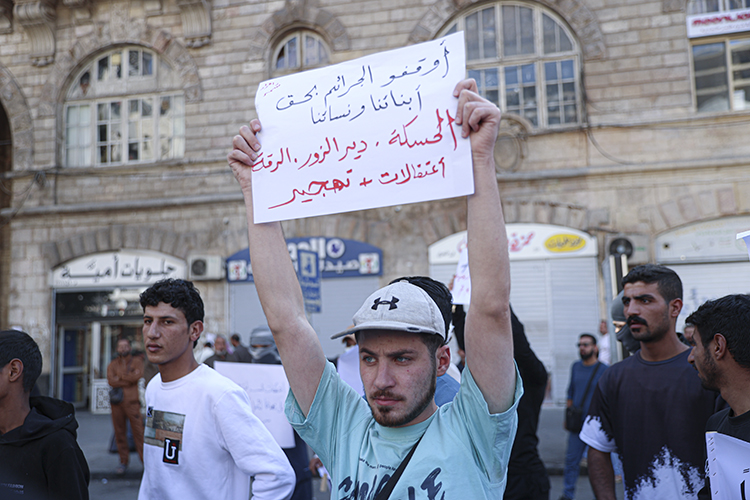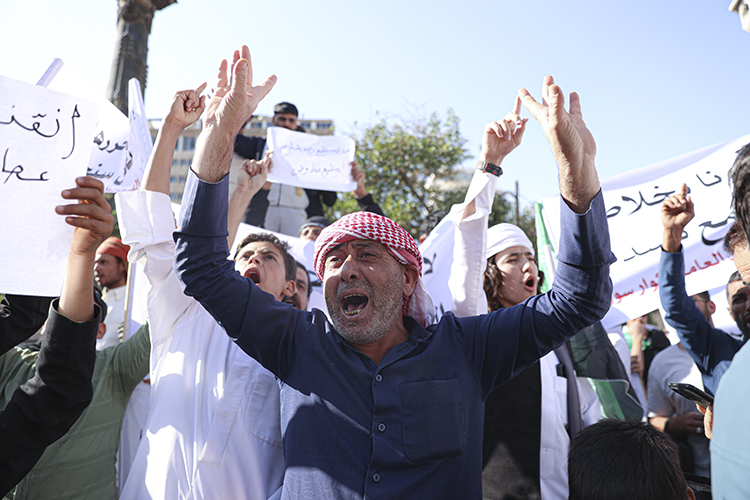 Örgütün işgal ettiği bölgelerde gerçekleştirdiği ihlalleri, yolsuzlukları ve zorla silah altına alma uygulamalarını protesto eden siviller, Suriye hükümetine müdahale çağrısında bulundu.