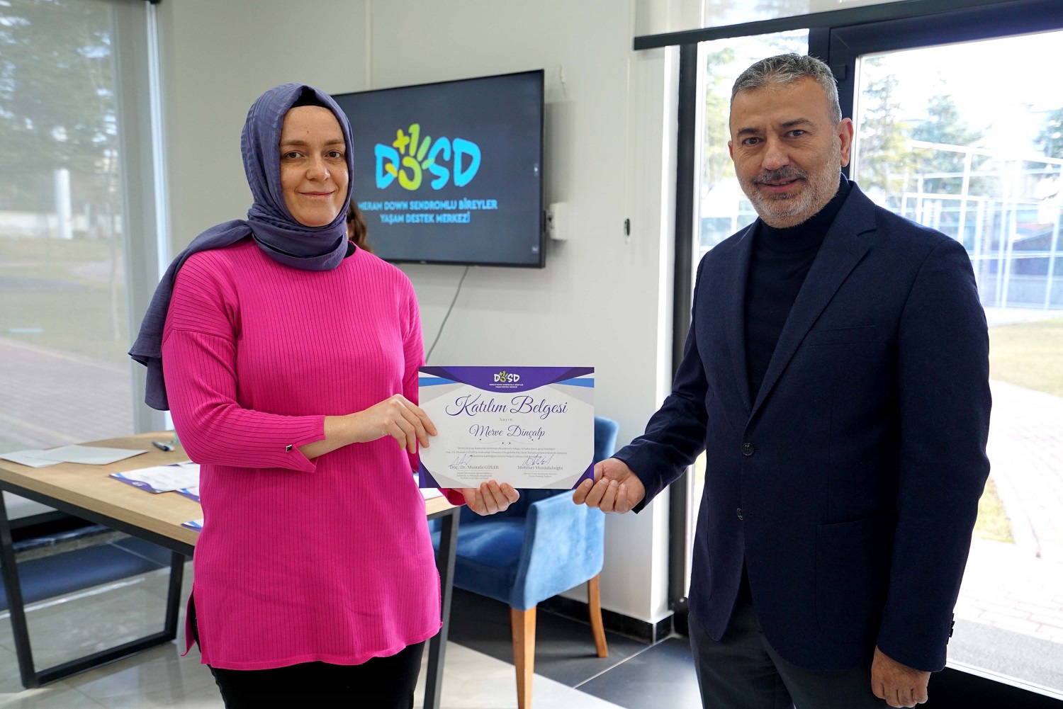 Down Sendromlu Bireyler Yaşam Destek Merkezi DOSD Meram'ın down sendromlu çocuğa sahip annelere yönelik olarak düzenlediği "Olumsuz Duygularla Baş Etme” konulu grupla psikolojik danışma programı, 10 haftalık sürecin ardından katılım belgesinin takdimi ile tamamlandı.