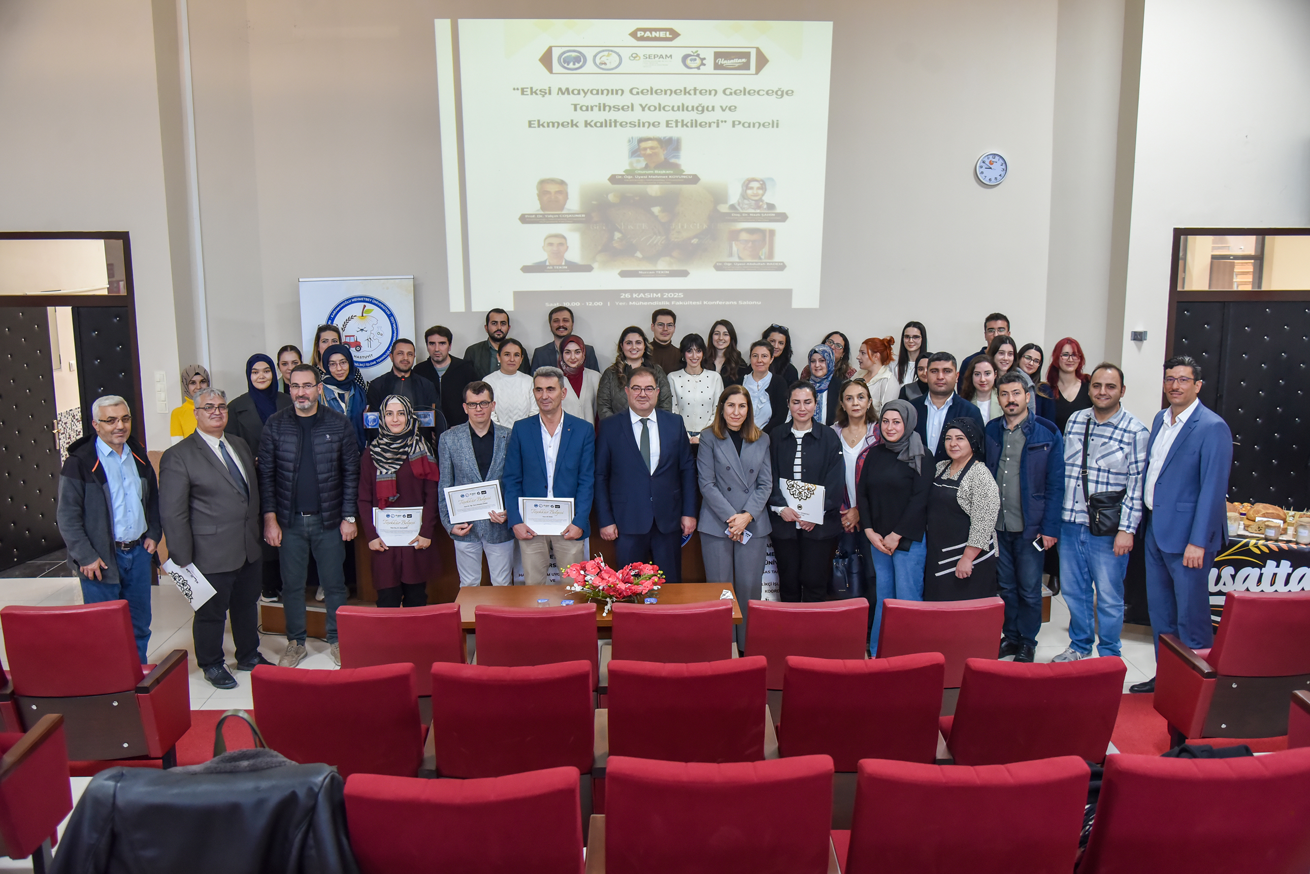 Panelde konuşan Dr. Öğr. Üyesi Abdullah Badem, ekmeğin kendi kendine fermente olarak mikrobiyolojik bir dönüşüme uğraması sonucunda ekşi mayanın ortaya çıktığını belirtti. Ekşi mayanın sağlık açısından önemli faydalarına değinen Dr. Öğr. Üyesi Abdullah Badem, "Ekşi maya, bağırsak sağlığı için oldukça uygun bir ortam oluşturur. Kan şekerinin daha yavaş yükselmesine, kolesterolün düşürülmesine ve çeşitli bağırsak rahatsızlıklarının azalmasına katkı sağlayan birçok olumlu sağlık etkisi vardır.” dedi