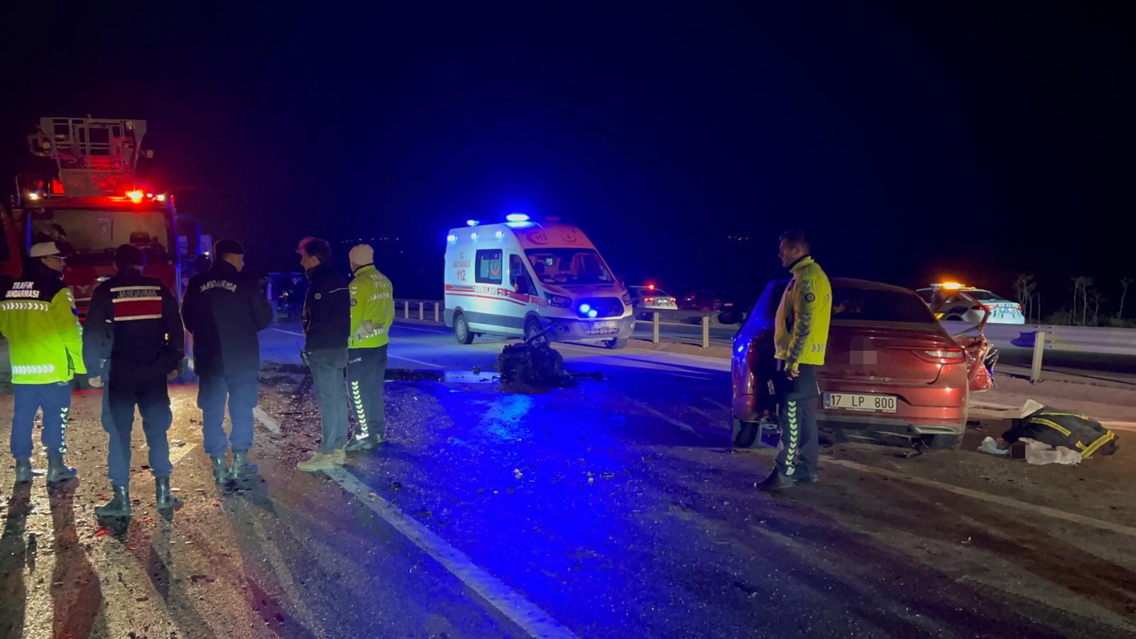 Kazayı gören diğer sürücüler durumu 112 Acil sağlık ekiplerine bildirdi. İhbar üzerine olay yerine çok sayıda ambulans ve itfaiye ekibi sevk edildi. Kaza sonucunda iki otomobildeki 5 kişi hayatını kaybederken, 1 kişi ise yaralandı. Kazada, 35 APD 325 araçta bulunan Nuray Tekin, Osman Göksu, Doğuran Samet Eğer hayatını kaybetti. Mustafa Soysal idaresindeki 17 LP 800 plakalı araçta bulunan Neslihan Soysal ve Hanife Soysal hayatını kaybederken sürücü yaralandı. Ambulansla hastaneye kaldırılan sürücü taburcu edildi.