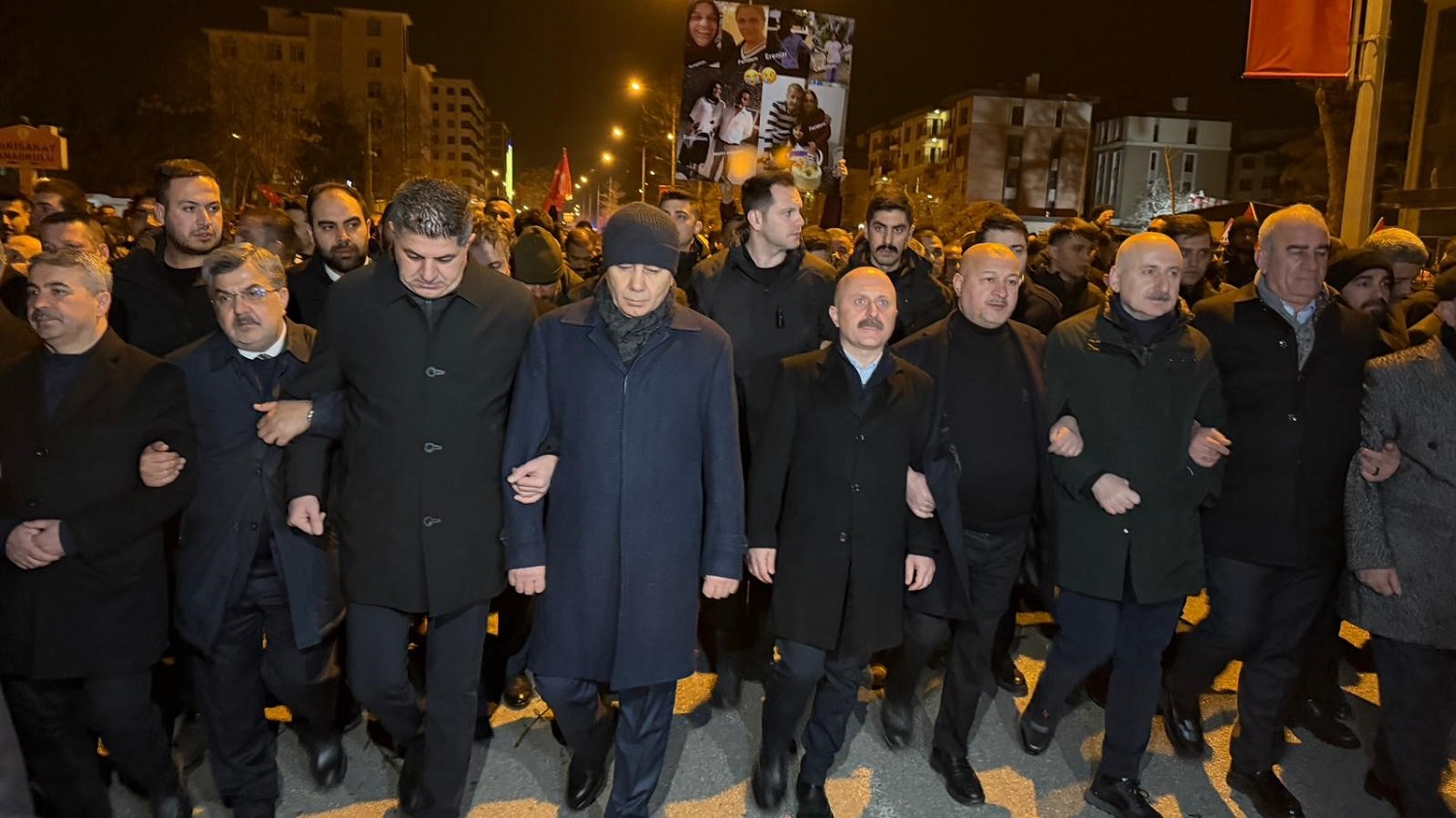 Adıyaman Valiliği önünde toplanan binlerce vatandaş İçişleri Bakanı Ali Yerlikaya, CHP Genel Başkanı Özgür Özel, Vali Osman Varol, Belediye Başkanı Abdurrahman Tutdere ve il protokol üyeleriyle birlikte Atatürk Bulvarı üzerinde bulunan ve depremde duran Saat Kulesi'nin önünü kadar yürüdü.