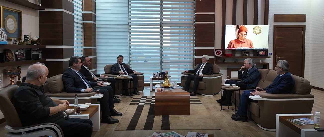 Ziyarette heyeti ANMEG VAKFI Mütevelli Heyeti Başkanı Ahmet Özer, mütevelliler Nurettin Bay ve İlker Özkan ağırladı.