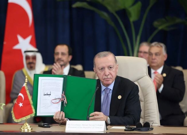 SORU: Sayın Cumhurbaşkanım bu tarihi zirve bizim son iki yıldır şahit olduğumuz bu soykırımcı İsrail'in saldırganlığına, topraklarını genişletme çabalarına, bu işgalci tutumlarına set çekebilecek nitelikte mi? Yani Lübnan'dan, Suriye'ye kadar bölgede bombalamadık yer bırakmayan İsrail'i bu tarihi zirve dizginledi mi? Dizginleyebilecek mi? Bu niteliği taşıyor mu?