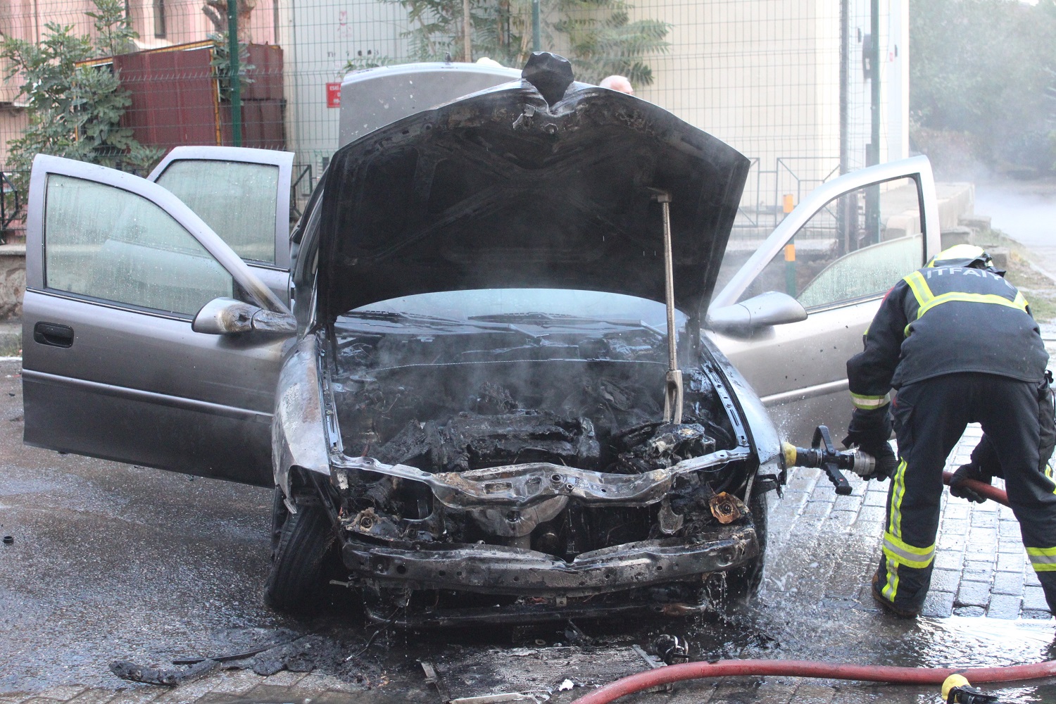 Otomobilde çıkan yangın ise çevredeki bir iş yerinin güvenlik kamerasına yansıdı. Görüntülerde otomobilin motor kısmını saran alevler yer aldı.