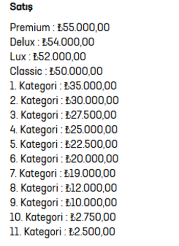 Ev sahibi Galatasaray, karşılaşmanın bilet fiyatlarını duyurdu. Bilet fiyatları 2 bin 500 lira ile 55 bin lira arasında değişiyor.