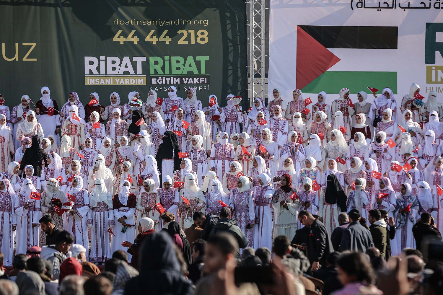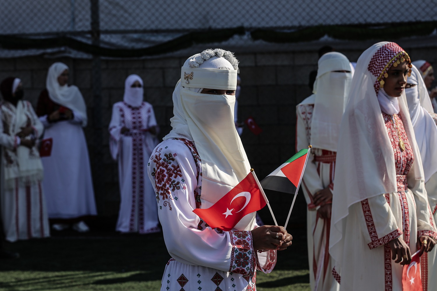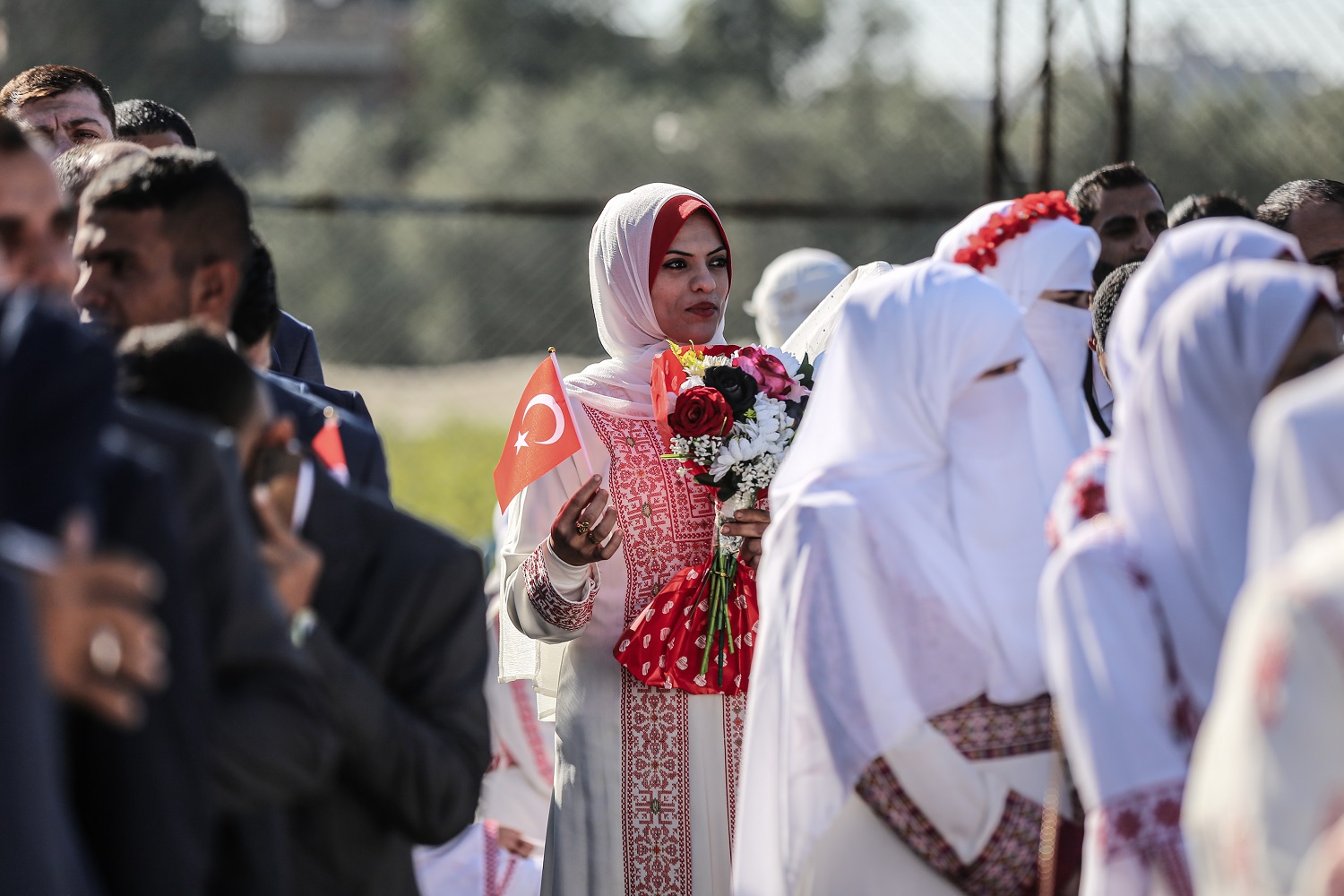 Binlerce kişinin katıldığı düğünde, alan Filistin ve Türk Bayraklarıyla süslendi.