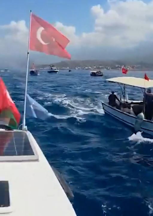 Katılımcılar, teknelerine astıkları Türk ve Filistin bayraklarıyla Akdeniz'e açıldı.