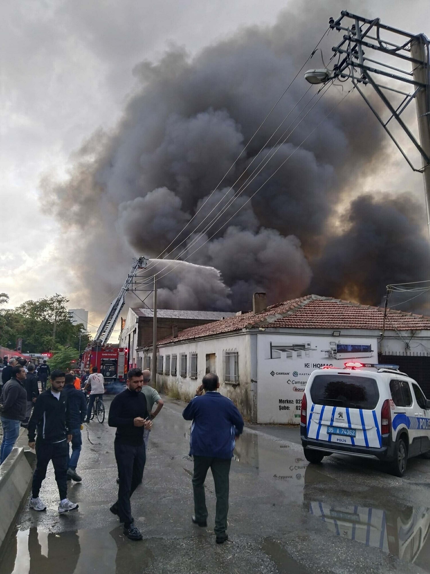 Alevler kısa sürede depoyu sardı, siyah duman gökyüzünü kapladı. Depodan patlama sesleri yükseldi.