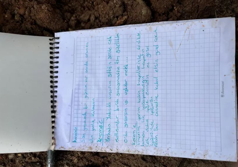 Mezarlığa gelen aile yakınları, okul arkadaşları ve vatandaşlar, çocukların mezarları başına bırakılan not defterlerine notlar yazdı.