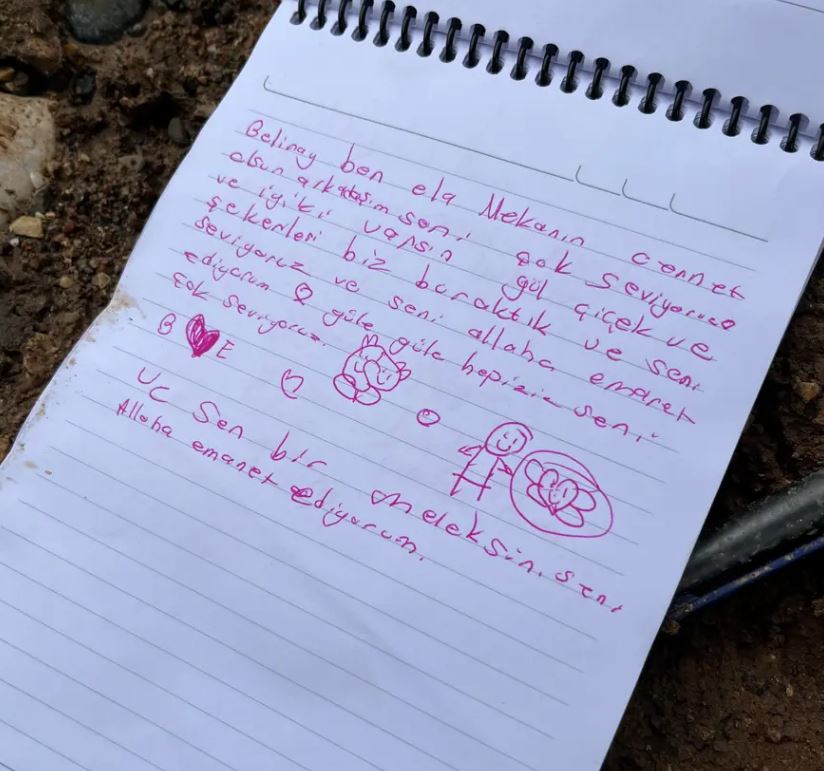 Notta, "Depremde 4 yaşında kızım Nehir'imi kaybettim. Ona selam söyleyin ona sarılın." ifadeleri yer aldı.