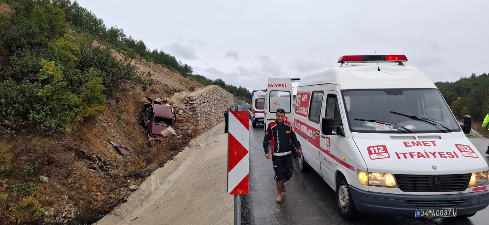 Kütahya’nın Emet ilçesinde sağanak nedeniyle kayganlaşan yolda kontrolden çıkan otomobilin istinat duvarına çarptığı kazada karı koca hayatını kaybetti.