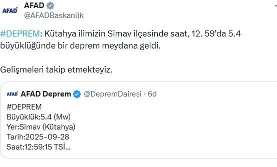 Kütahya’nın Simav ilçesinde 5,4 büyüklüğünde deprem meydana geldi. Depremi İstanbul ve İzmir’de de hissedildi.