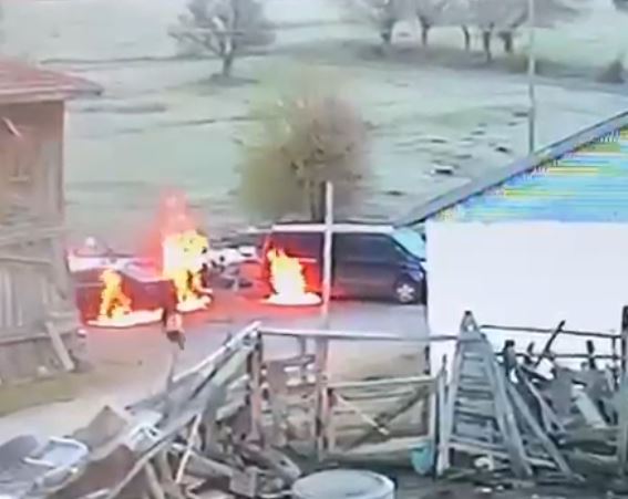 Olay, dün sabah saatlerinde Ankara'nın Çamlıdere ilçesine bağlı kırsal Çukurören Mahallesi'nde, Muhtar Hasan Sağlam'ın evinin önünde gerçekleşti. Muhtar Sağlam ve oğlu Ali Osman Sağlam'a ait olan ATV, minibüs, otomobil ve kamyonet, 3 şüphelinin saldırısıyla bir anda alev topuna döndü.