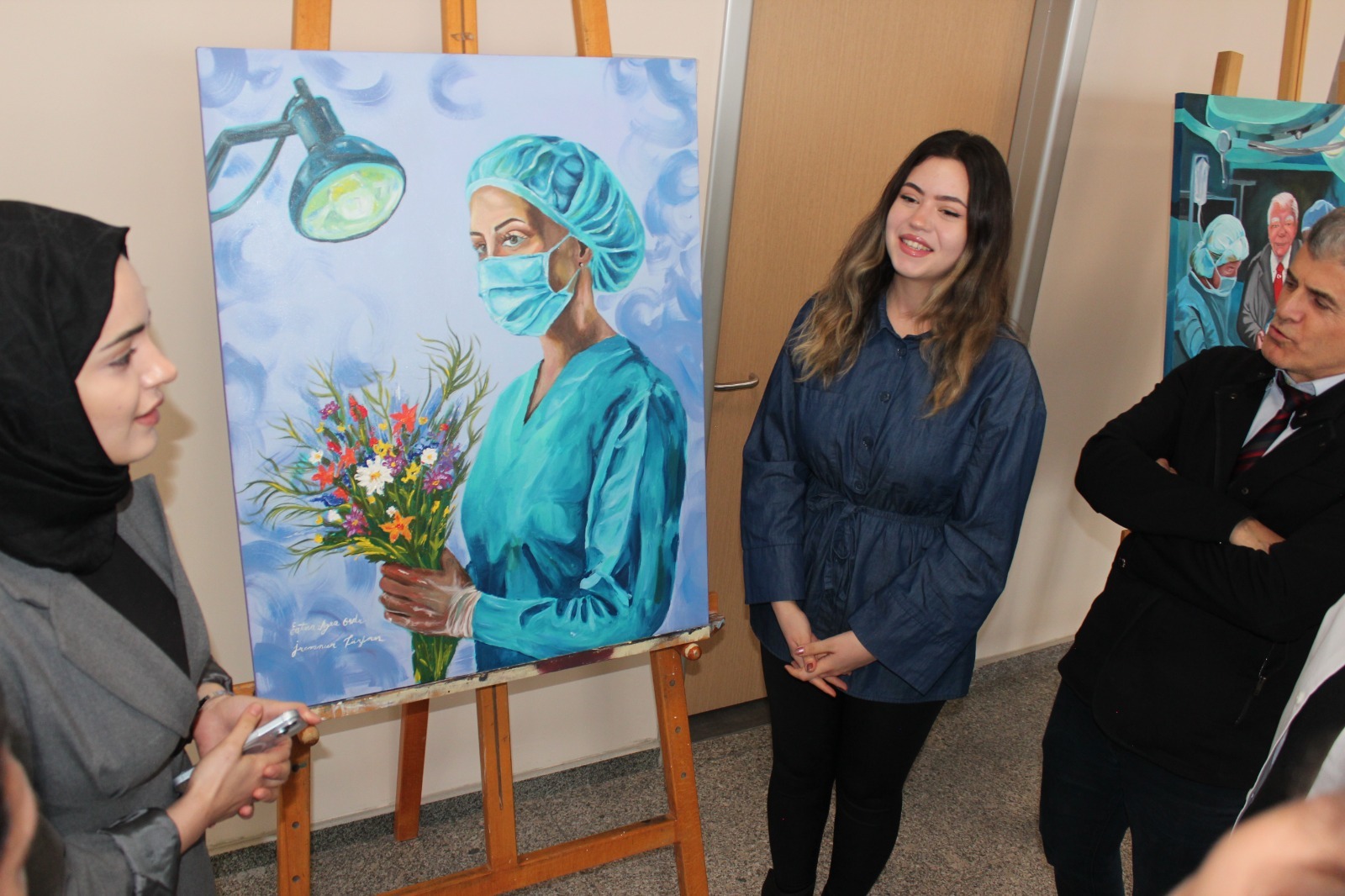 Açılış programının ardından hastane çalışanları, öğrenciler ve ziyaretçiler sergiyi ilgiyle gezdi.