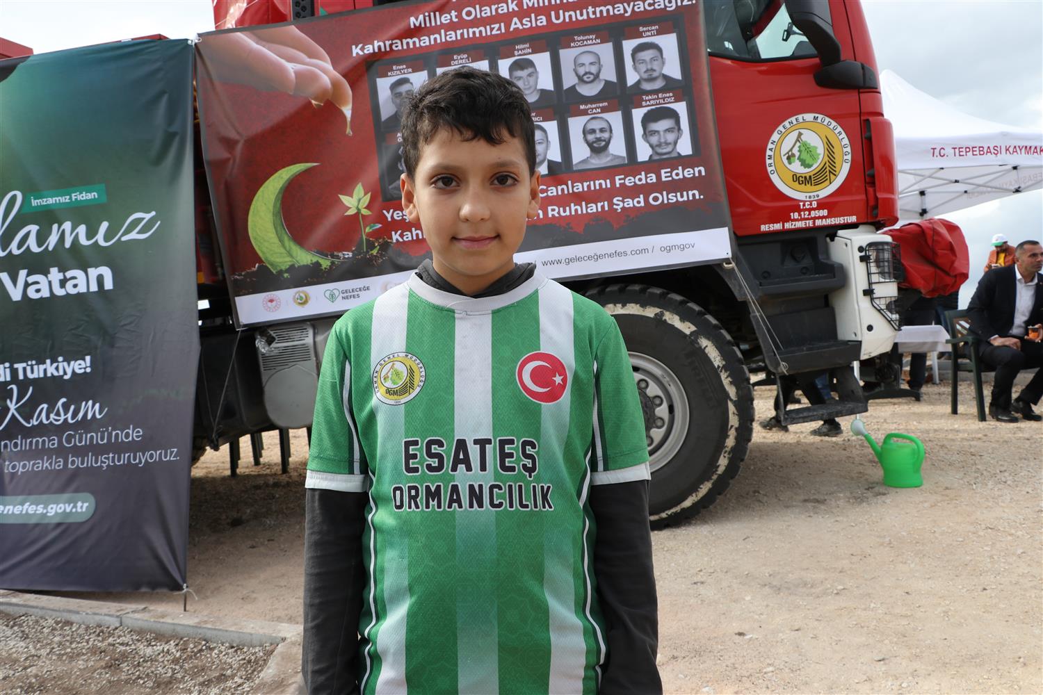 Orman şehidi Eyüp Dereli'nin oğlu Batuhan Dereli (10), fidan dikim etkinliğinde babasını andı. Babasının adını yaşatmak istediğini dile getiren Dereli, "Şu anda kendimi mutlu hissediyorum. Çünkü bu hem vatanımız için, vatanımızda daha fazla oksijen kaynağı olacak hem de bu Eskişehir ve tüm dünya ülkeleri için hepimize armağan olacak. Babam şu an burada olsaydı kendisini mutlu hissederdi. Ben de şu anda babam gibi kendimi mutlu hissediyorum. Böyle bir yer yapıldığı için gerçekten çok mutluyum. Benim hayalim, ileride babam gibi iyi bir dozer operatörü olmak. Bazen okullar tatil olunca, evde canım sıkıldığında onun yanına giderdim. Bazen eğlenceli aktiviteler yapardık, dışarıda gezerdik. En sevdiğimiz aktivite dışarı çıkıp, bisiklet sürmekti. Çok mutlu oldum ve duygulandım” dedi.