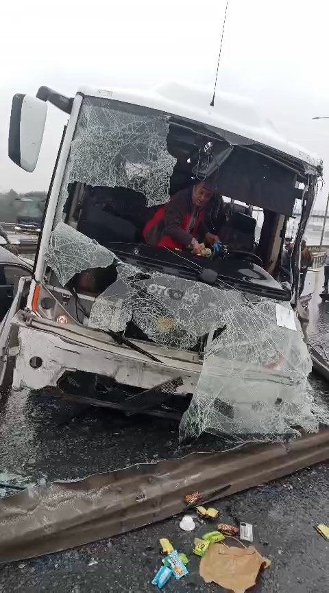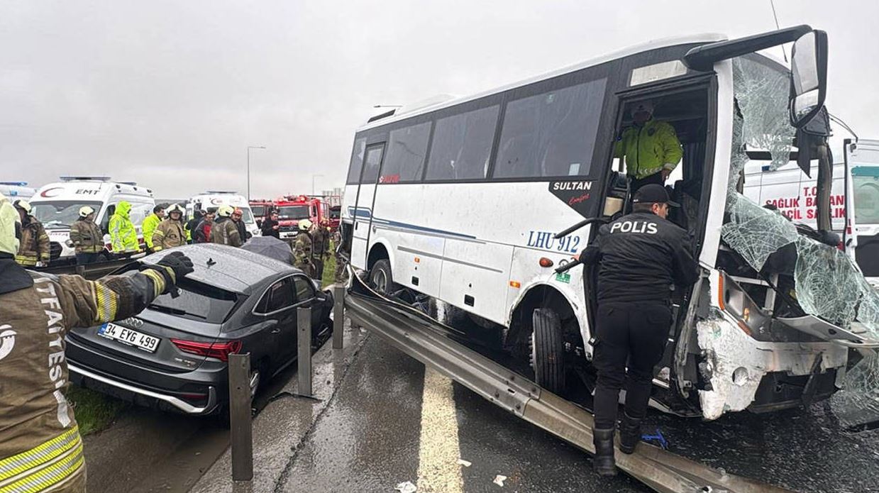 İstanbul'da polisleri görev noktasına götüren servis aracı sabah saatlerinde Kuzey Marmara Otoyolu Başakşehir-Habipler bağlantı noktasında bariyere çarptı.