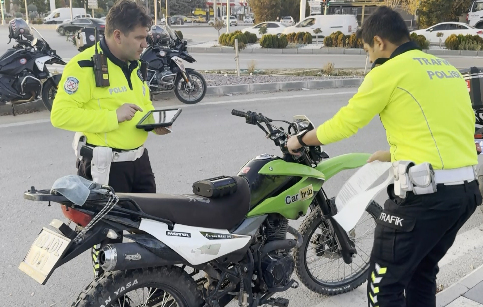 Motosiklet üzerinde inceleme yapan trafik ekipleri, H.C.A.'ya "dur ihtarına uymamak, ters yönde seyretmek, plaka kapatmak, ehliyetsiz araç kullanmak, sigorta ve muayene eksikliği" maddelerinden toplam 45 bin 746 lira para cezası kesti.