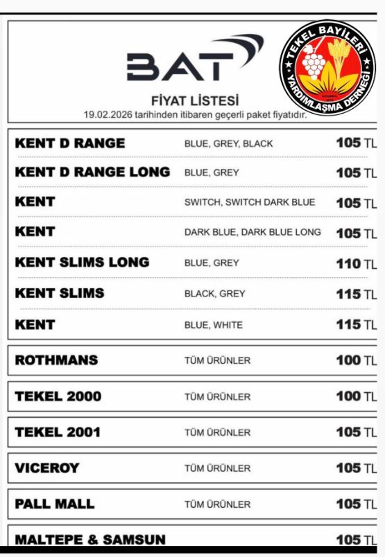 19 Şubat 2026 tarihinden itibaren geçerli olmak üzere BAT grubundaki birçok üründe fiyat artışı gerçekleşti.