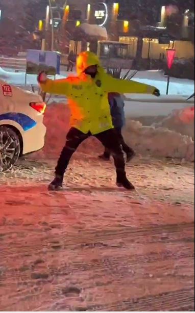 Kısa süreliğine uygulamaya ara vererek çocuklarla kar topu oynayan polislerin o anları çevredekiler tarafından cep telefonu kamerasıyla kayda alındı. Görüntülerde, eğlenceli anlara çevredekilerinde katıldığı görüldü.