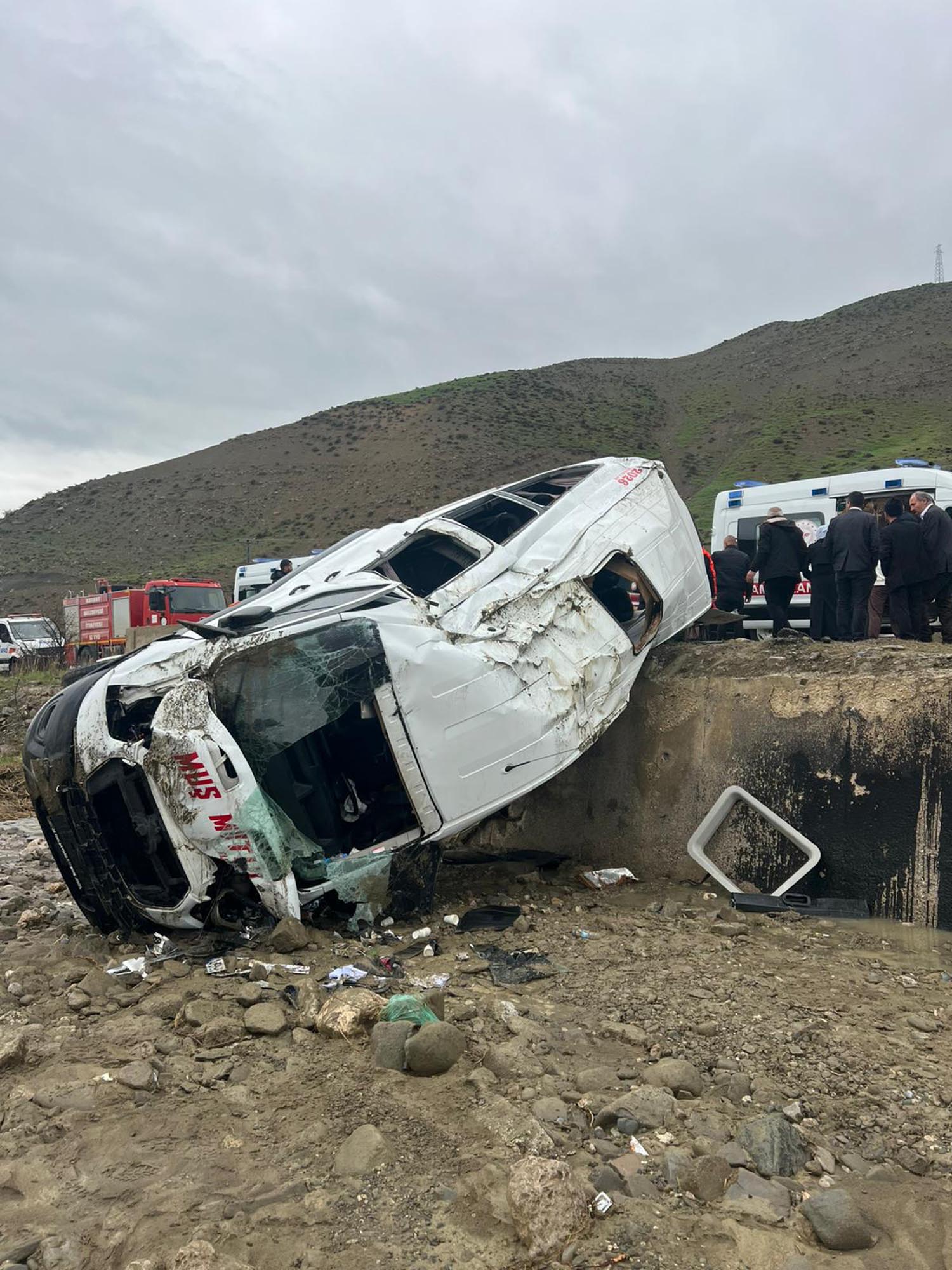 Muş’un Korkut ilçesinde yolcu minibüsünün dere yatağına devrildiği kazada, 16 kişi yaralandı.