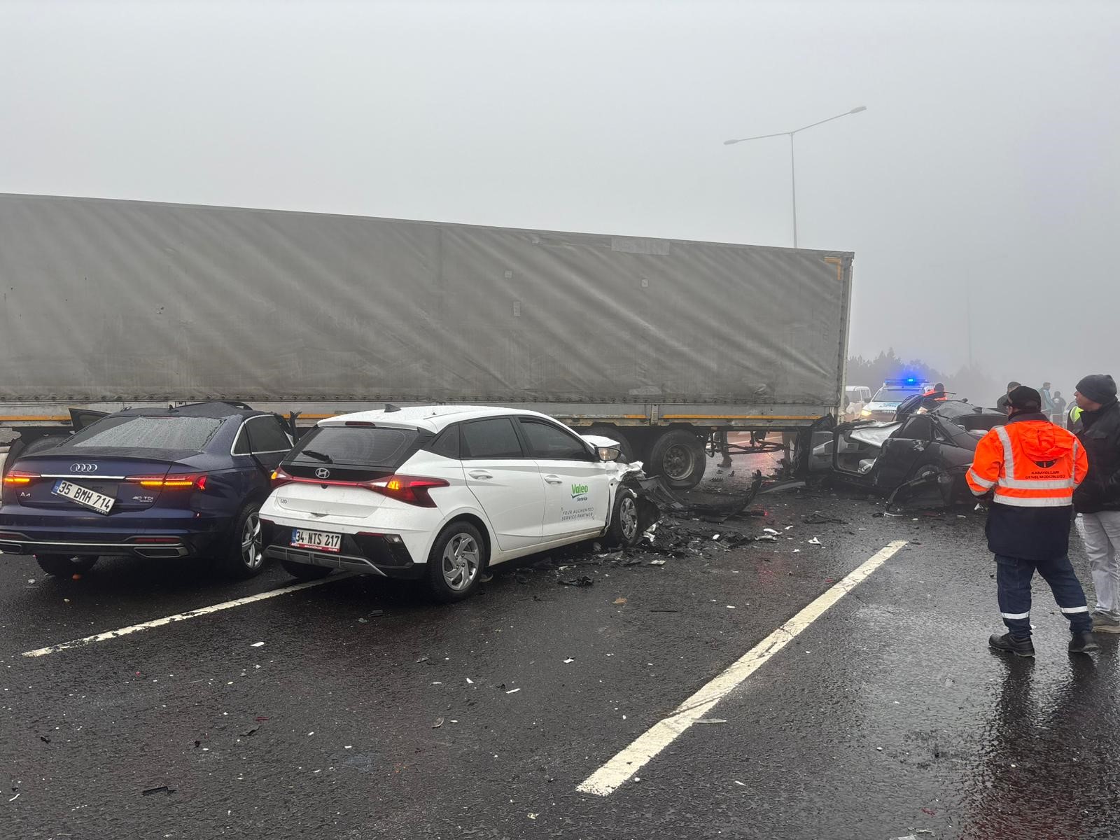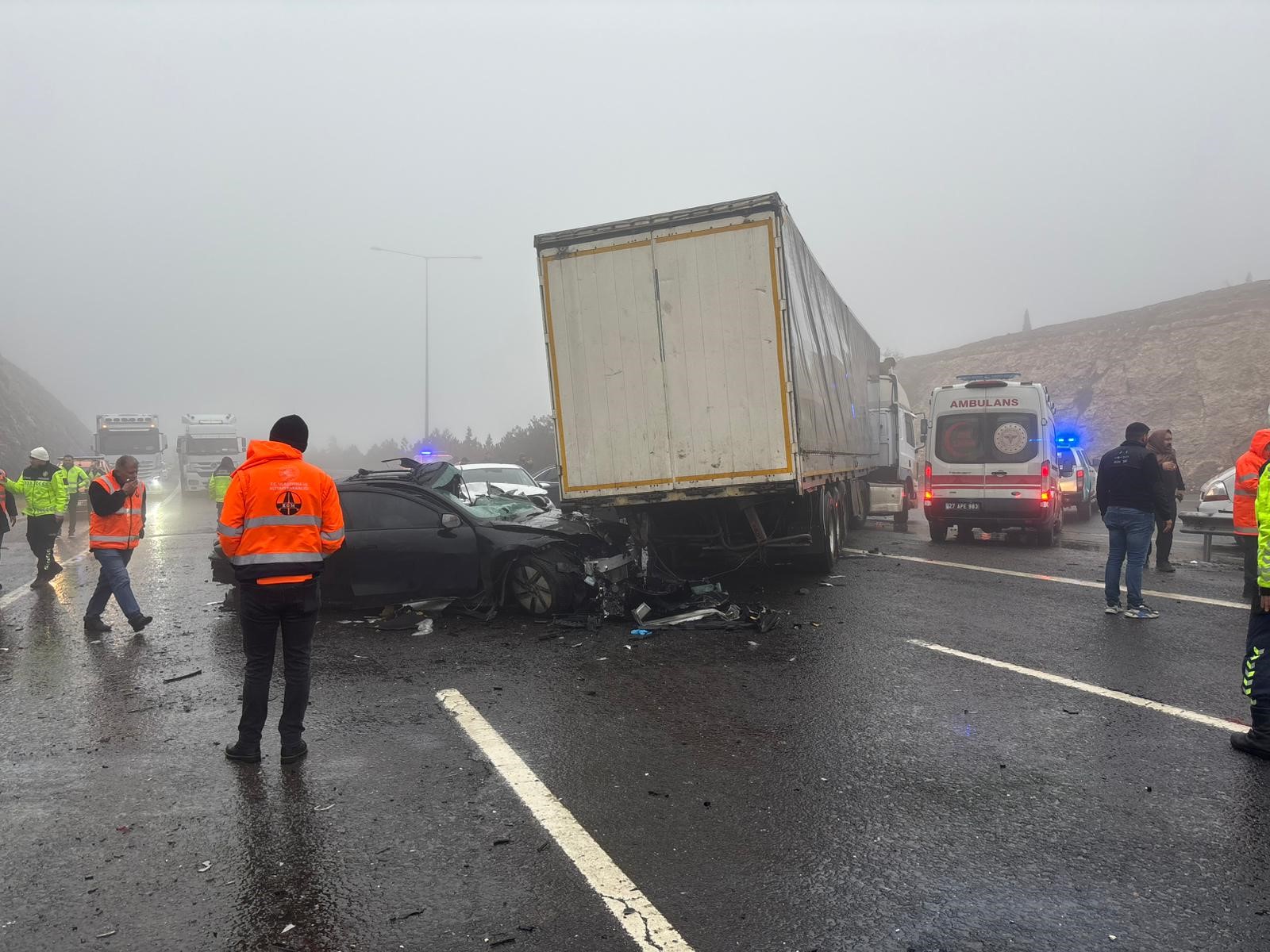 Edinilen bilgilere göre, etkili olan sis ve yağış nedeniyle 1 otobüs, 1 tır ve 6 otomobilin karıştığı zincirleme kazada ortalık savaş alanına döndü. Kazada 2 kişi hayatını kaybederken çok sayıda kişi yaralandı.