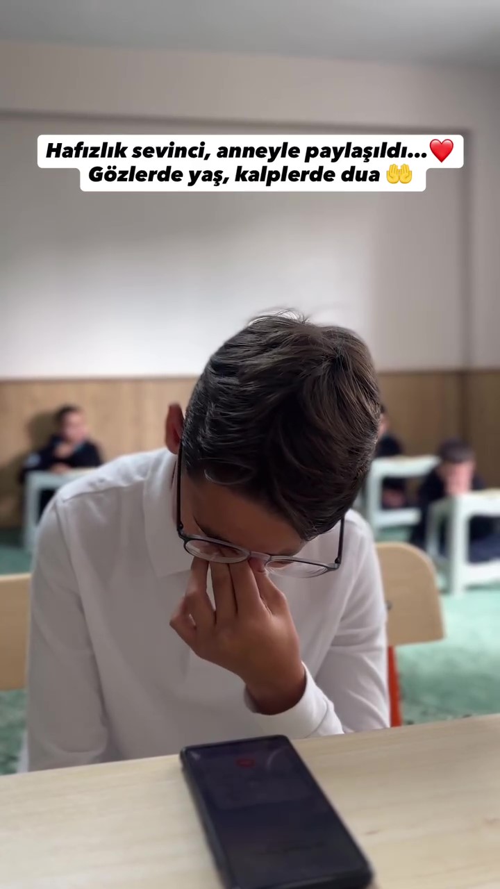 Hafızlık eğitimini tamamlayan Eymen annesine "Anne, hafız oldum!” diyerek müjdeyi verdi. Telefonun diğer ucundaki anne ise sevinçten gözyaşlarına hâkim olamadı. O anlar, Eymen'in cep telefonu kamerasıyla kaydedildi.