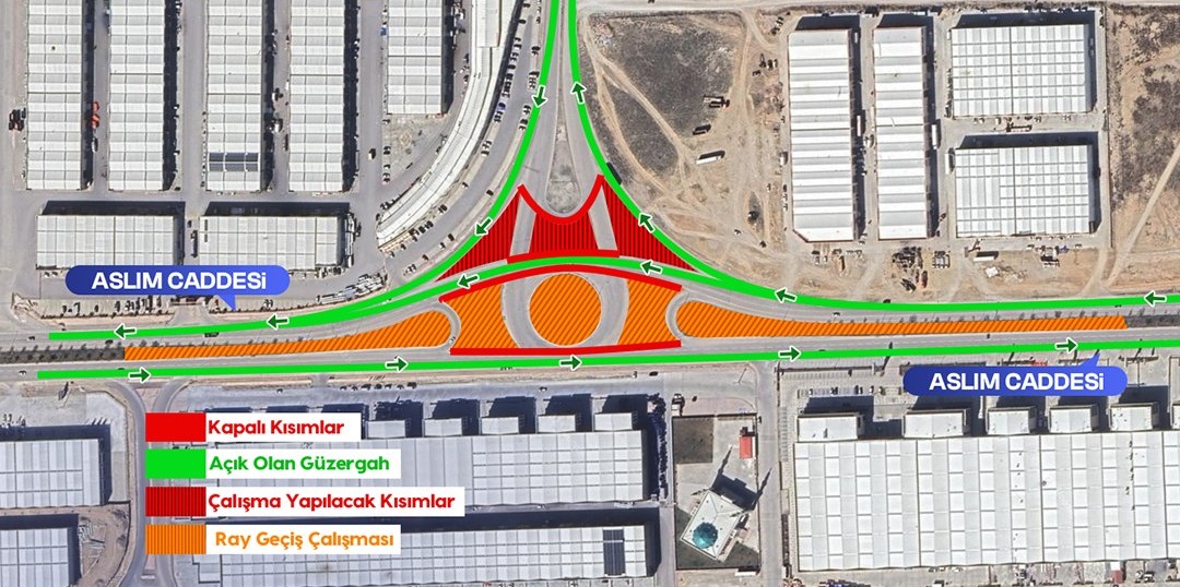 Çalışmalar süresince Aslım Caddesi güzergahı boyunca ve Önen Caddesi güzergahı boyunca trafik akışı kontrollü olarak sağlanacak. Ancak Aslım Caddesi ile 10753. Sokak kesişimi ve Önen Caddesi ile Sedirler Caddesi kesişimi geçici olarak trafiğe kapalı olacak.