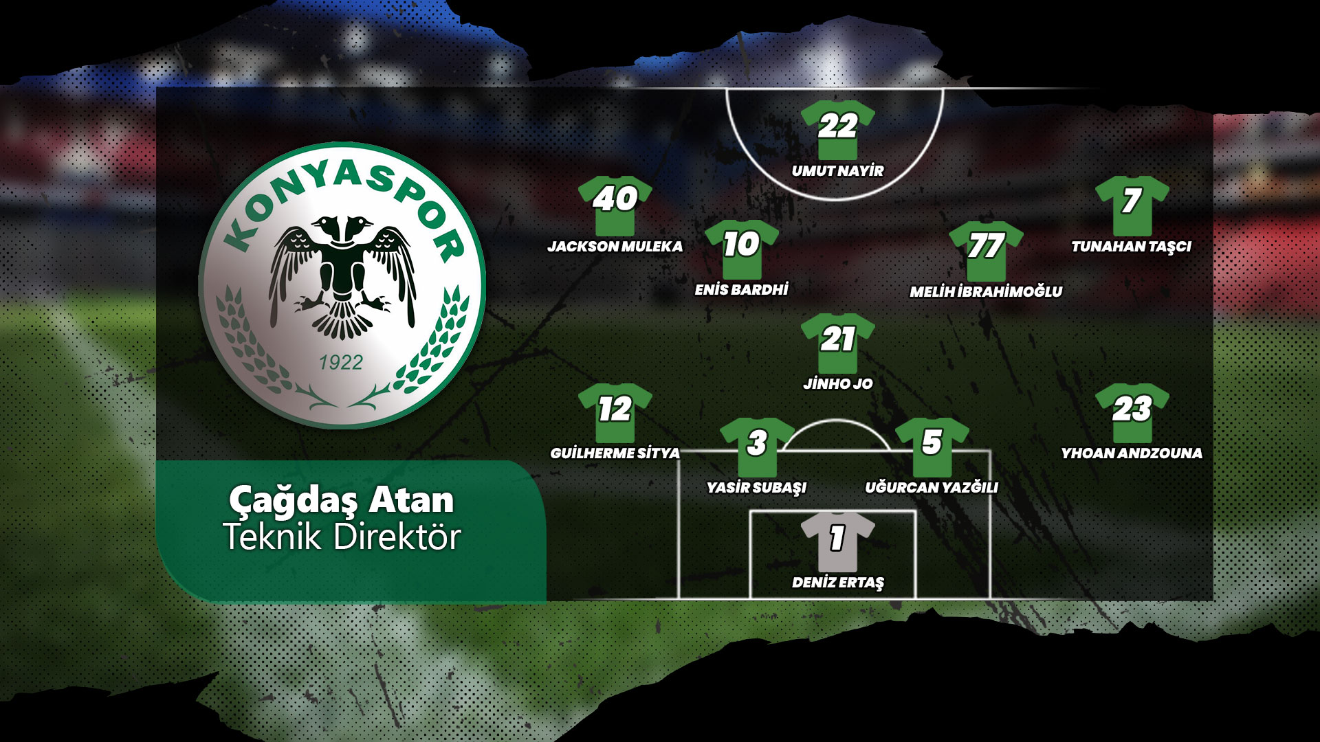 Teknik direktör Çağdaş Atan nezaretinde 4-1-4-1 dizilişiyle mücadele eden Konyaspor'un; Antalyaspor maçında da aynı diziliş ve oyun anlayışıyla sahada yer alması bekleniyor. Anadolu Kartalı'nın kalesinde Deniz Ertaş (1), Yhoan Andzouna (23), Uğurcan Yazğılı (5), Yasir Subaşı (3) ve Guilherme Sitya (12), tekli ön liberoda Jinho Jo (21), 4'lü orta alanda Tunahan Taşcı (7), Melih İbrahimoğlu (77), Enis Bardhi (10) ve Jackson Muleka (40), forvette ise Umut Nayir'in (22) forma giymesi bekleniyor.