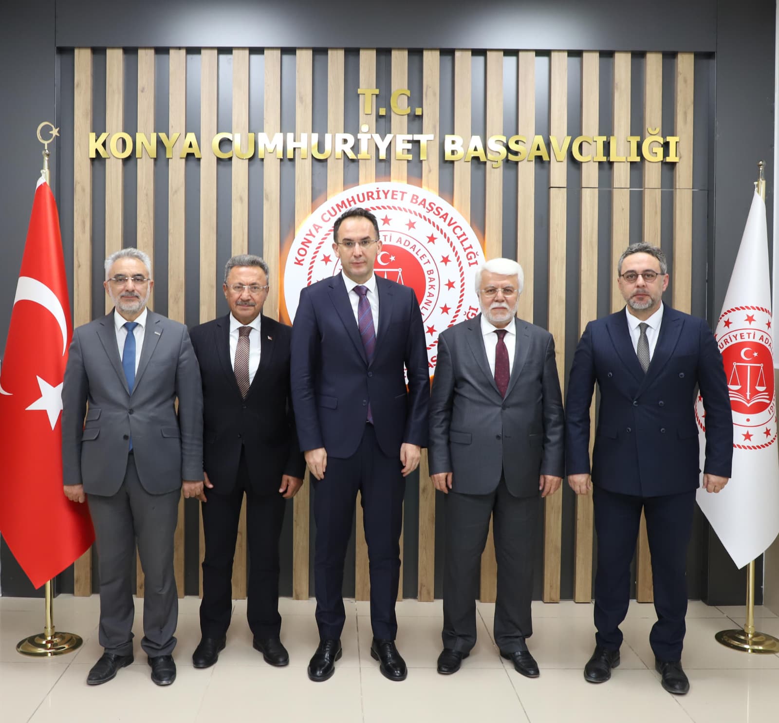 ANMEG VAKFI Mütevelli heyet başkanı Ahmet Özer, Eski Konya Baro Başkanı Hasip Şenalp, ANMEG Mütevellisi Nurettin Bay ve Kontv Haber Müdürü İbrahim Arıcı Konya Cumhuriyet Başsavcısı Cuma Çoban'a hayırlı olsun ziyaretinde bulundu.