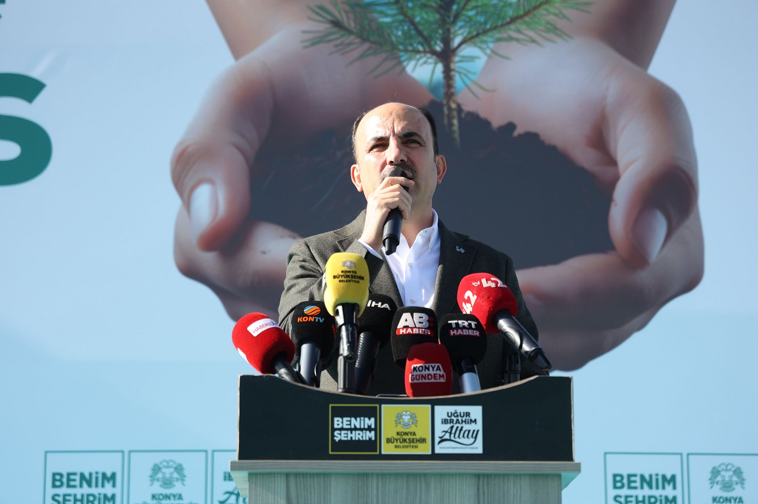 "Konya'yı daha yaşanabilir bir şehir kılmak için çaba sarf ediyoruz. Bu anlamda; 2019 yılından bu yana 6 farklı ağaçlandırma sahamızda 5.6 milyon metrekare alanda 1 milyon 730 bin fidanı toprakla buluşturduk. Yine 2019 yılından bu yana peyzaj düzenlemelerimiz, ilçelerimiz ve kamu kurumlarımıza yaptığımız desteklerle birlikte 3 milyon 22 bin fidan, süs ve çalı bitkisini doğaya kazandırdık. Bugün yapacağımız törenle birlikte daha önce ağaçlandırma yaptığımız bölgelerde yenileme çalışmalarını da başlatıyoruz. Bu çalışmalarımız kapsamında; 2025 yılında yaklaşık 100 bin yeni fidanı toprakla buluşturmuş olacağız. Siz değerli evlatlarımıza yeşille ve doğayla bütünleşmiş bir şehir bırakmak için gayret etmeye devam edeceğiz.”
