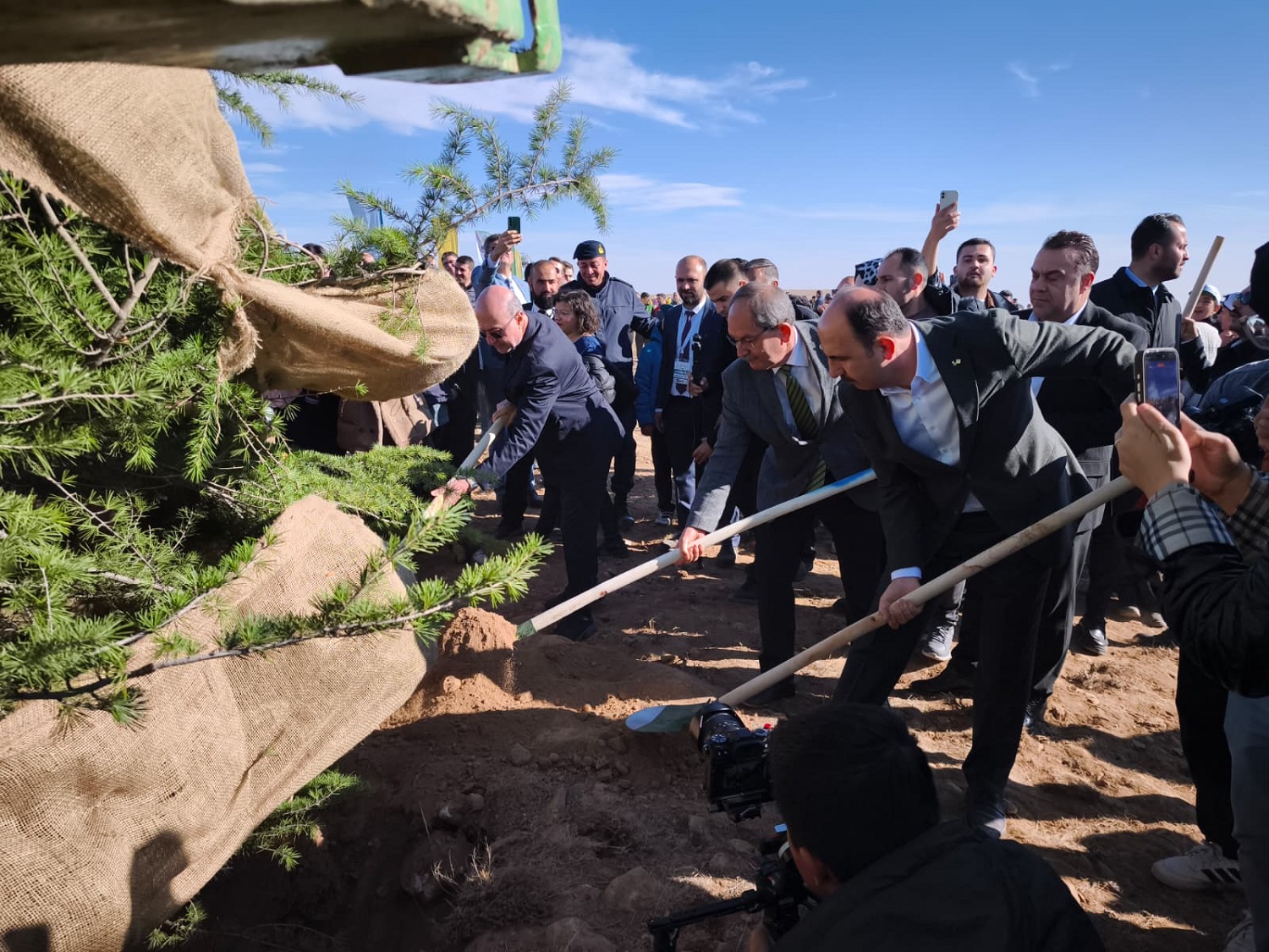 Konuşmaların ardından Başkan Altay, protokol ve yüzlerce öğrenci ellerindeki fidanları toprakla buluşturarak can suyunu verdi.