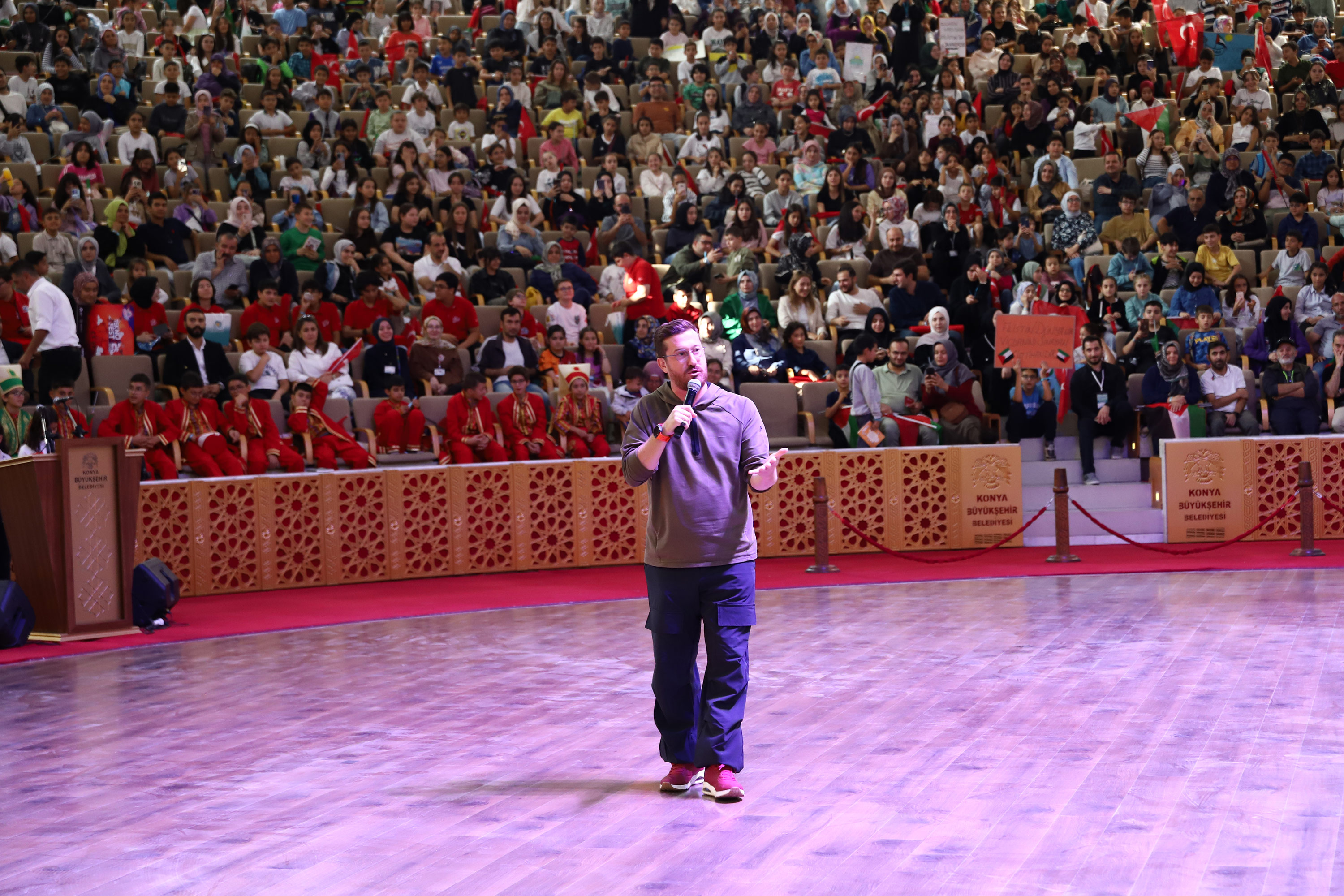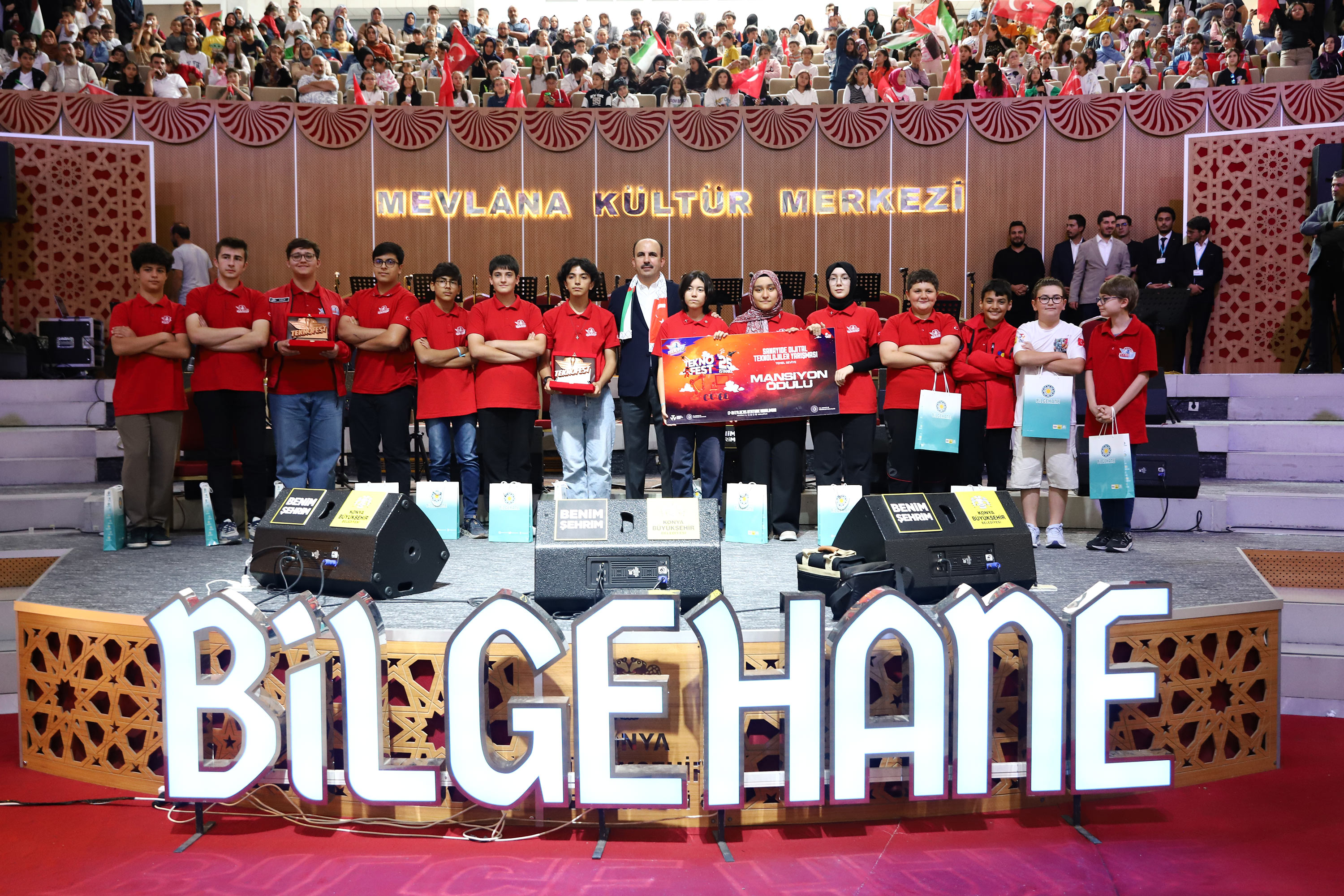 "Sertaç Abi” olarak tanınan Sertaç Güngör'ün konuşmasıyla devam eden programda, Bilim Konya'da ve TEKNOFEST'te ödül alan öğrencilere hediyeleri verildi.