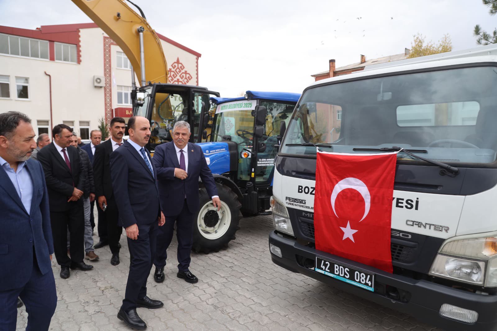Bozkır ilçesini de ziyaret eden Başkan Altay, belediyeye kazandırılan yeni iş makinelerinin hizmete girdiğini duyurdu. "İlçemizin çalışmalarında kullanılmak üzere Bozkır Belediyemizin araç filosuna yeni iş makineleri kazandırıldı. Her alanda daha güçlü hizmet üretmesine katkı sağlayacak bu yatırımların Bozkır'ımıza hayırlı olmasını diliyorum.” dedi.