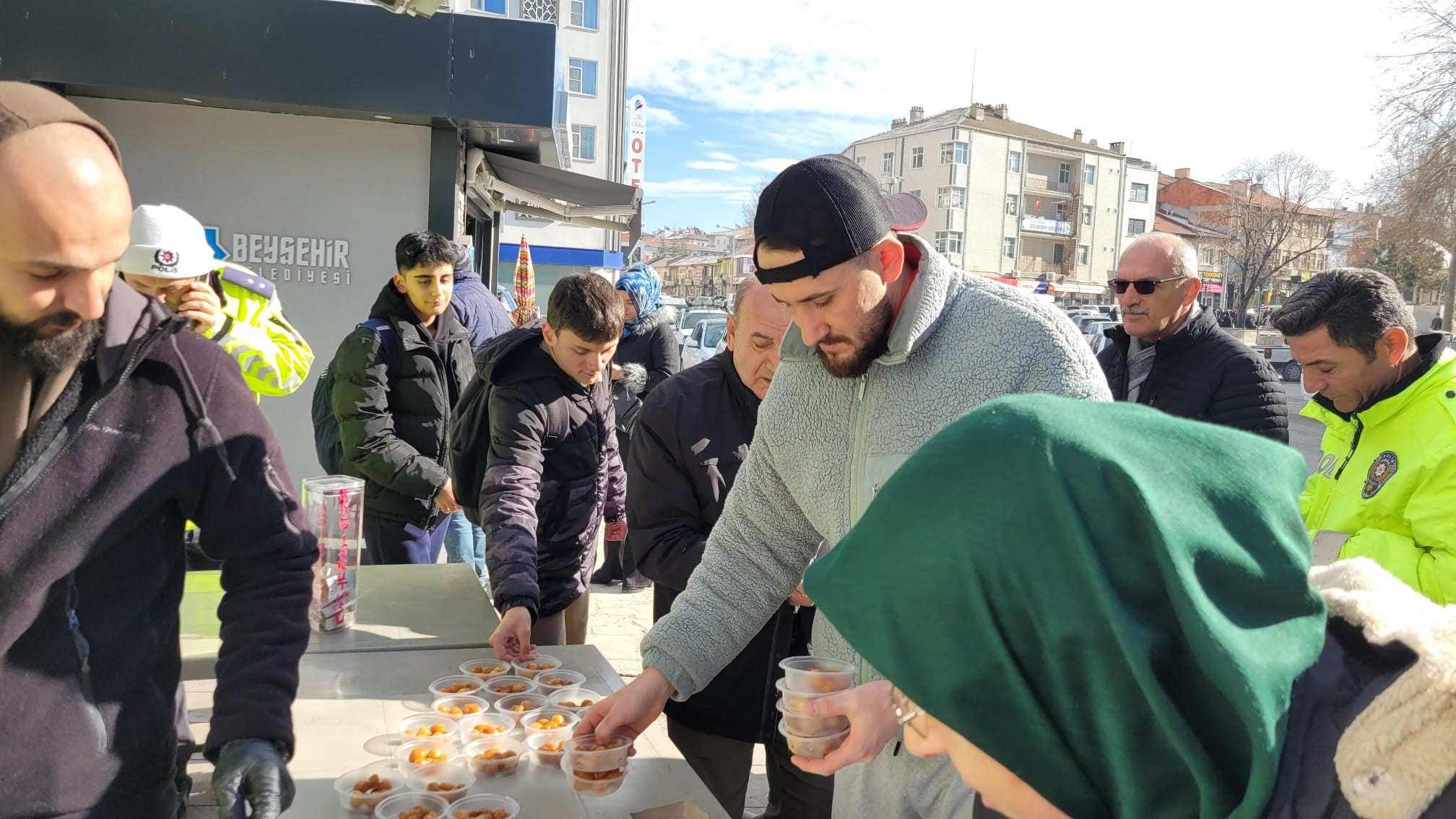 Konya’nın Beyşehir ilçesinde Kadın Dayanışma Derneği, üç ayların gelişi dolayısıyla şehitler için lokma dağıttı.
