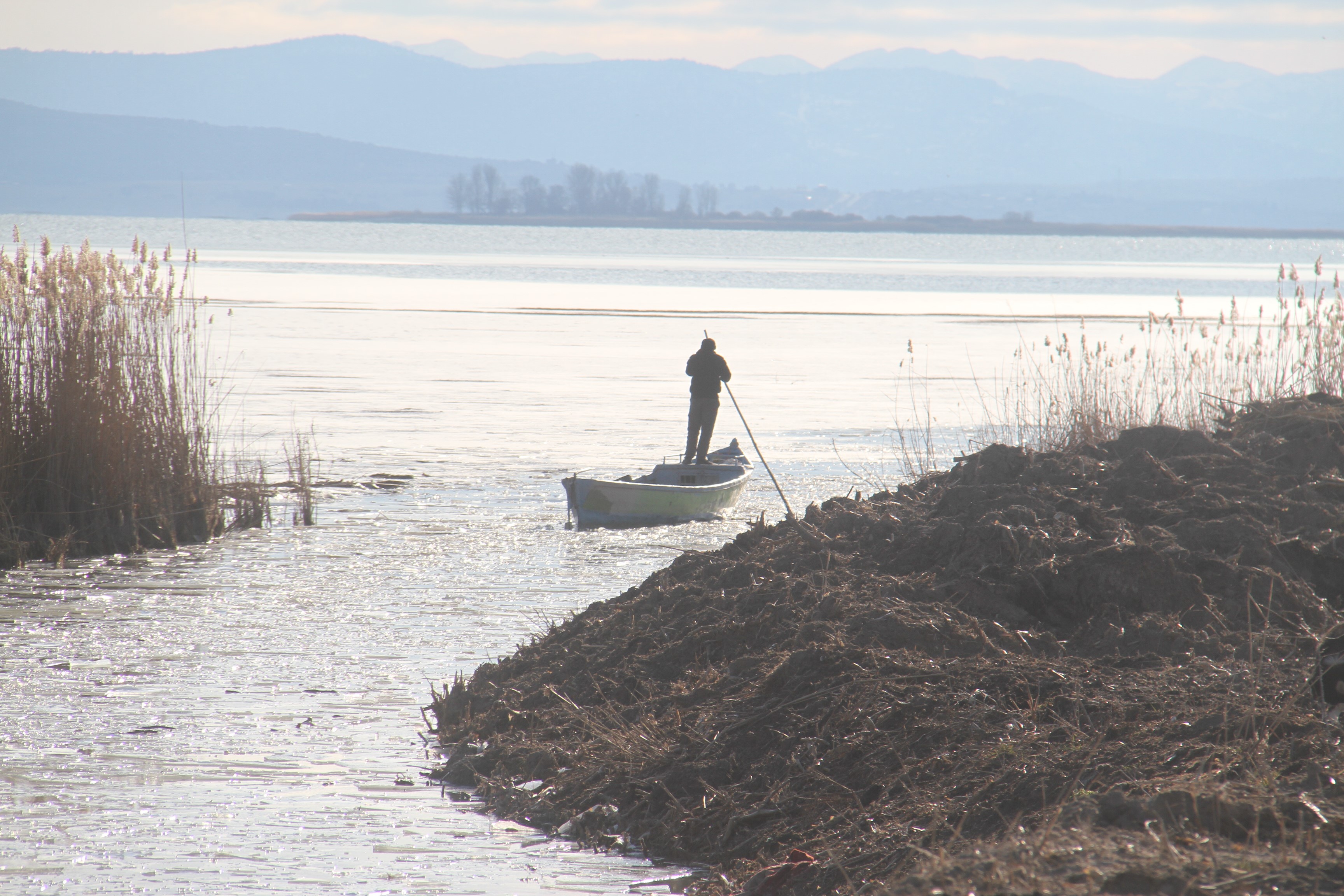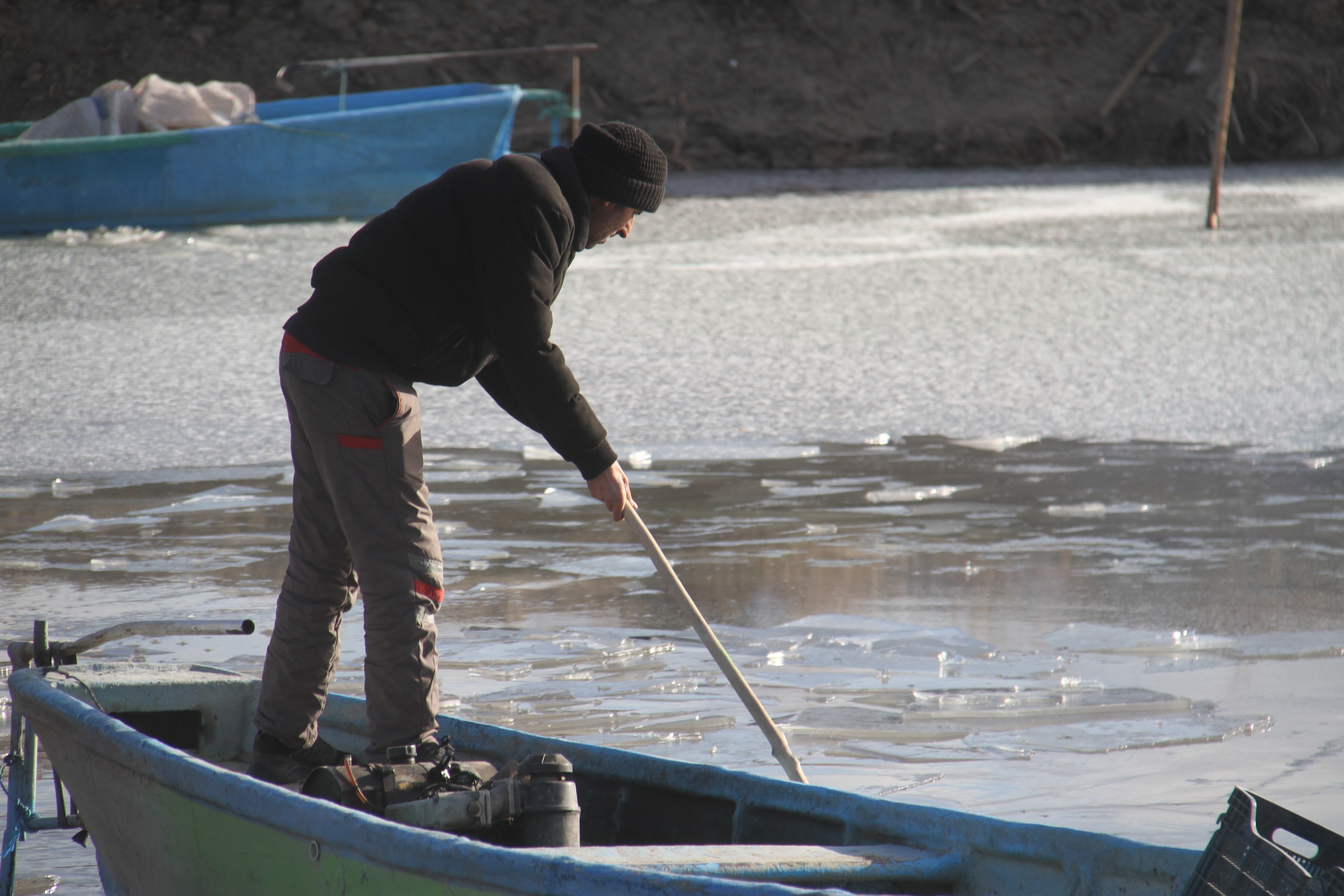 Beyşehir Gölü'nün Çiftlik Mahallesi balıkçılarından İbrahim Erdoğan, Ocak ayında buzlanma ve soğuk havalar nedeniyle balıkçılığa ara verdiklerini belirterek, "Kıyılar çok kalın buzla kaplı. Yaklaşık 500-600 metre sahil donmuş durumda. Buz hem teknelerimize hem de ağlarımıza zarar veriyor. Birkaç gün daha istirahat edeceğiz" dedi. Erdoğan, soğuk havada yürüttükleri buz kırma çalışmalarının riskli olduğuna da dikkat çekerek, "Tekne buzun üzerine çıkıp motor gücüyle buzu kırıyor. Buz kırılmazsa tekne kırılır. Çok riskli ama başka çaremiz yok" ifadelerini kullandı.