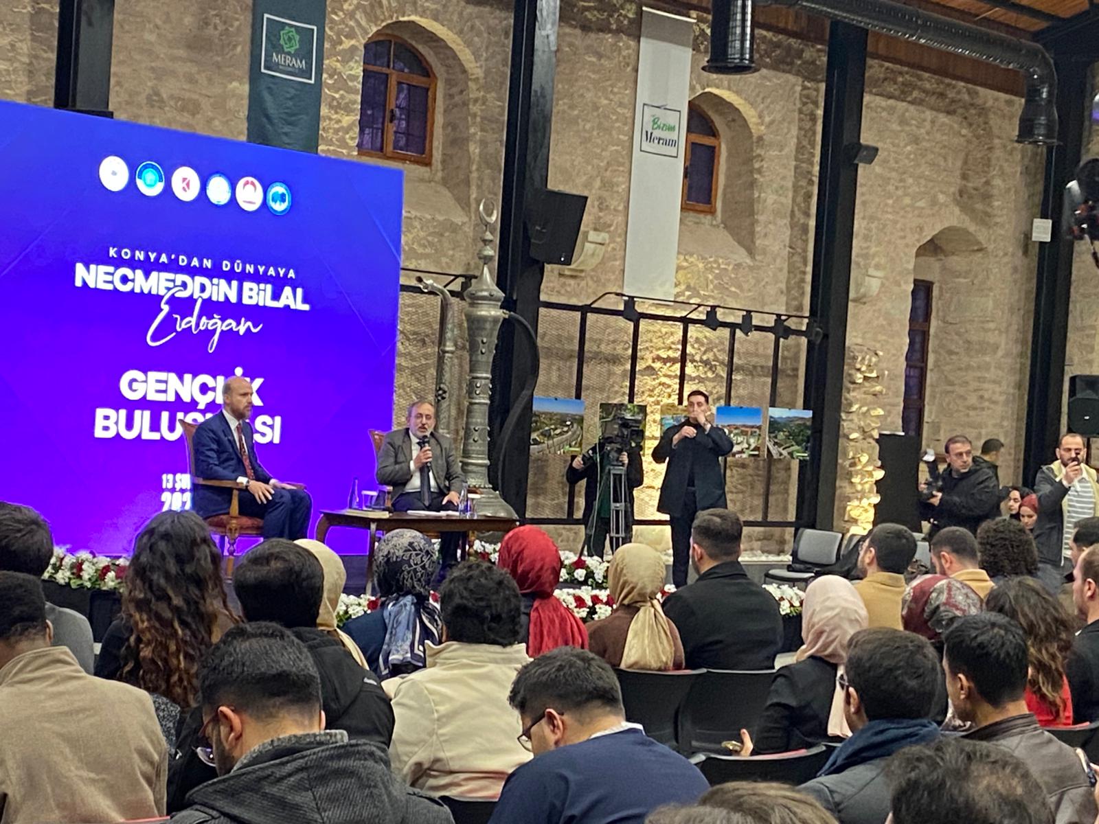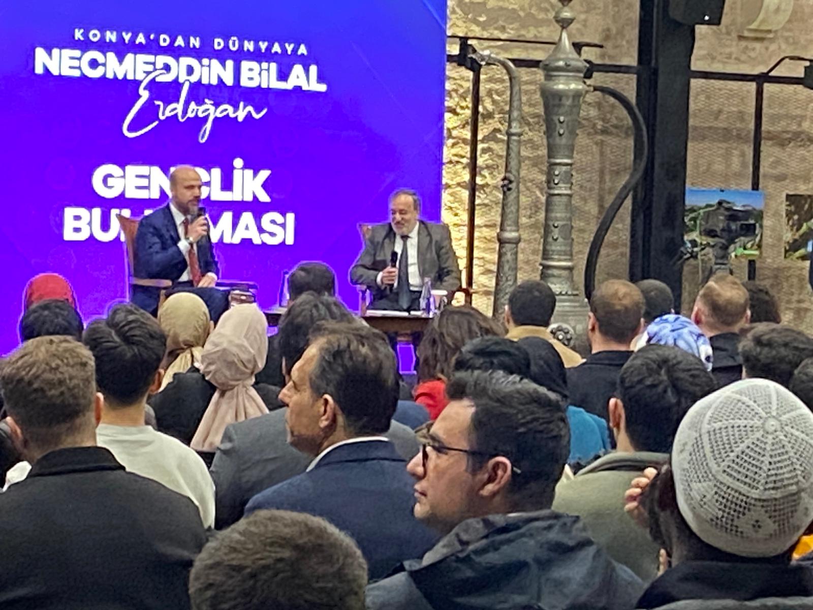 Konya'da Tantavi Kültür Merkezi'nde düzenlenen gençlik buluşmasında üniversite öğrencileriyle bir araya gelen İlim Yayma Vakfı Başkanı Necmettin Bilal Erdoğan, küresel vizyon, eğitim, kültür ve Filistin meselesi üzerine önemli mesajlar verdi.