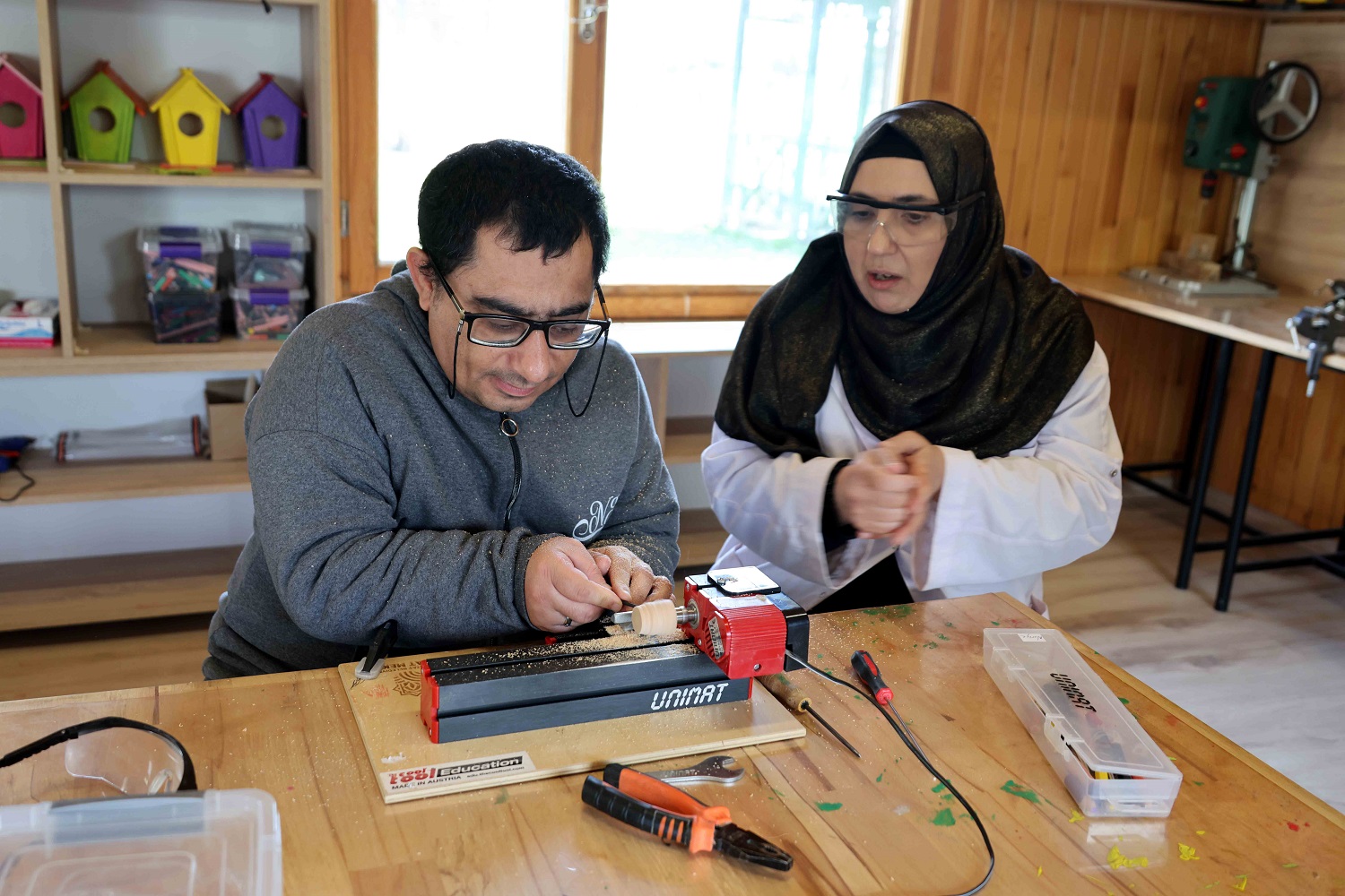 Karatay Özel Eğitim Uygulama Okulu öğrencileri, Tabiat Mektebi'nde düzenlenen farklı atölyelerde uygulamalı eğitimler aldı; hem öğrendi hem de keyifli vakit geçirdi. Öğrenciler, Doğal Yaşam ve Gıda Atölyesi, Kil Atölyesi ve Ahşap Atölyesi'nde poğaça ve kek yapımından kil şekillendirmeye, ahşap işçiliğinden üretime kadar birçok etkinliğe katıldı.