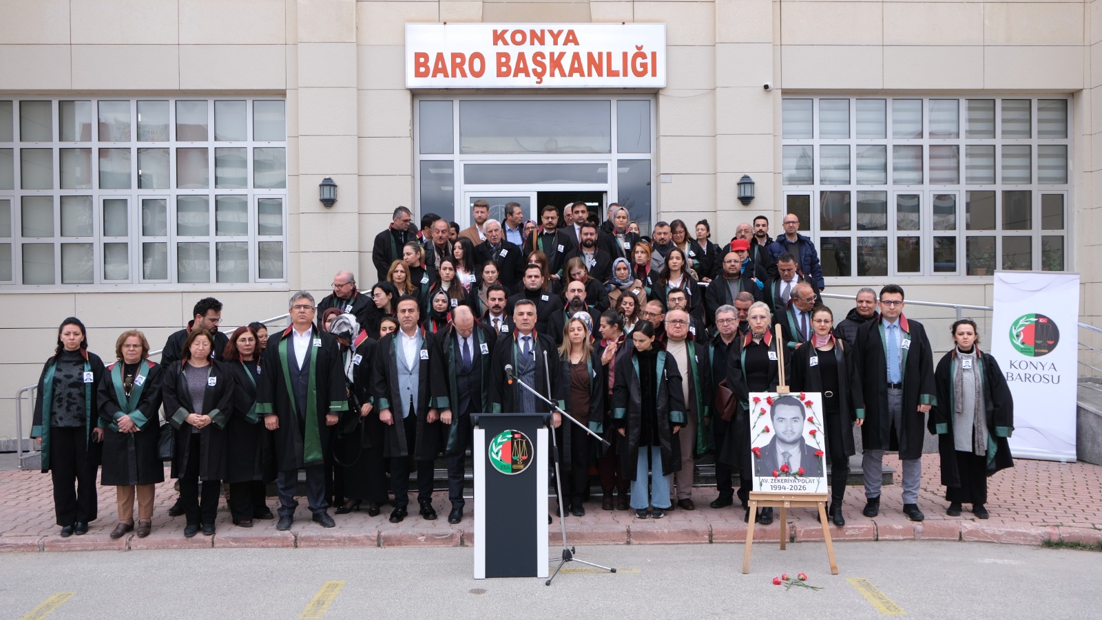 Olayın ardından Konya Barosu avukatları, meslektaşlarının silahlı saldırı sonucu hayatını kaybetmesine tepki göstermek amacıyla Konya Barosu önünde bir araya geldi.