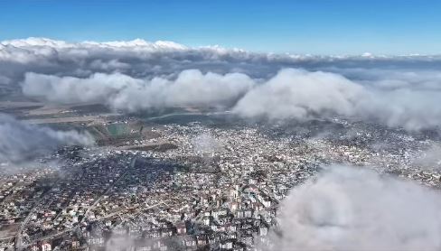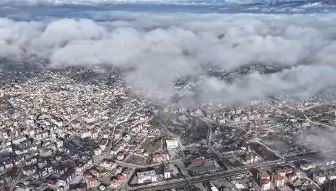 Konya'nın Karapınar ilçesinde birkaç gündür etkili olan sisli hava, drone ile kaydedilen görüntüler sayesinde kartpostallık manzaralara sahne oldu. İlçe üzerinde adeta yürüyen bulutlar, izleyenleri kendine hayran bıraktı.