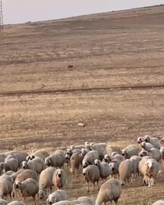 Edinilen bilgilere göre, bir çobana ait küçükbaş hayvanlar merada otlandığı sırada sürüye yaklaşan bir kurt, aniden saldırıya geçti. Saldırıda bir koyun yaralanırken, sürüdeki çoban köpeği hızla harekete geçerek kurdu kovaladı.
