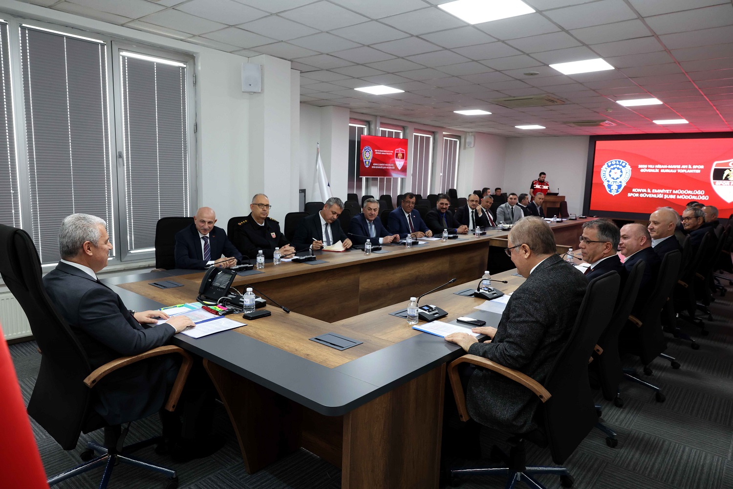Tümosan Konyaspor'un Fenerbahçe ve Trabzonspor ile oynayacağı müsabakalar başta olmak üzere, ilimizde gerçekleşecek diğer sportif karşılaşmalarda alınacak güvenlik tedbirlerine ilişkin yapılan bilgilendirme sunumuyla başlayan toplantıda, müsabakaların huzur ve güven içerisinde gerçekleştirilmesine yönelik yürütülecek faaliyetler görüşüldü.