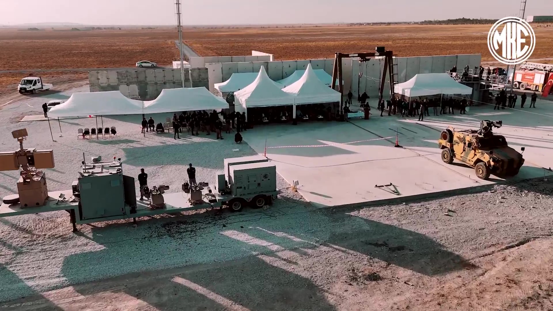 "Hard-kill” senaryolarında ise sistemde yer alan iki sabit 12.7 mm, araç üstü döner namlulu 12.7 mm ve 20 mm silah sistemleriyle sabit kanatlı insansız hava araçları, MKE'nin geliştirdiği anti-dron mühimmatıyla vuruldu.
