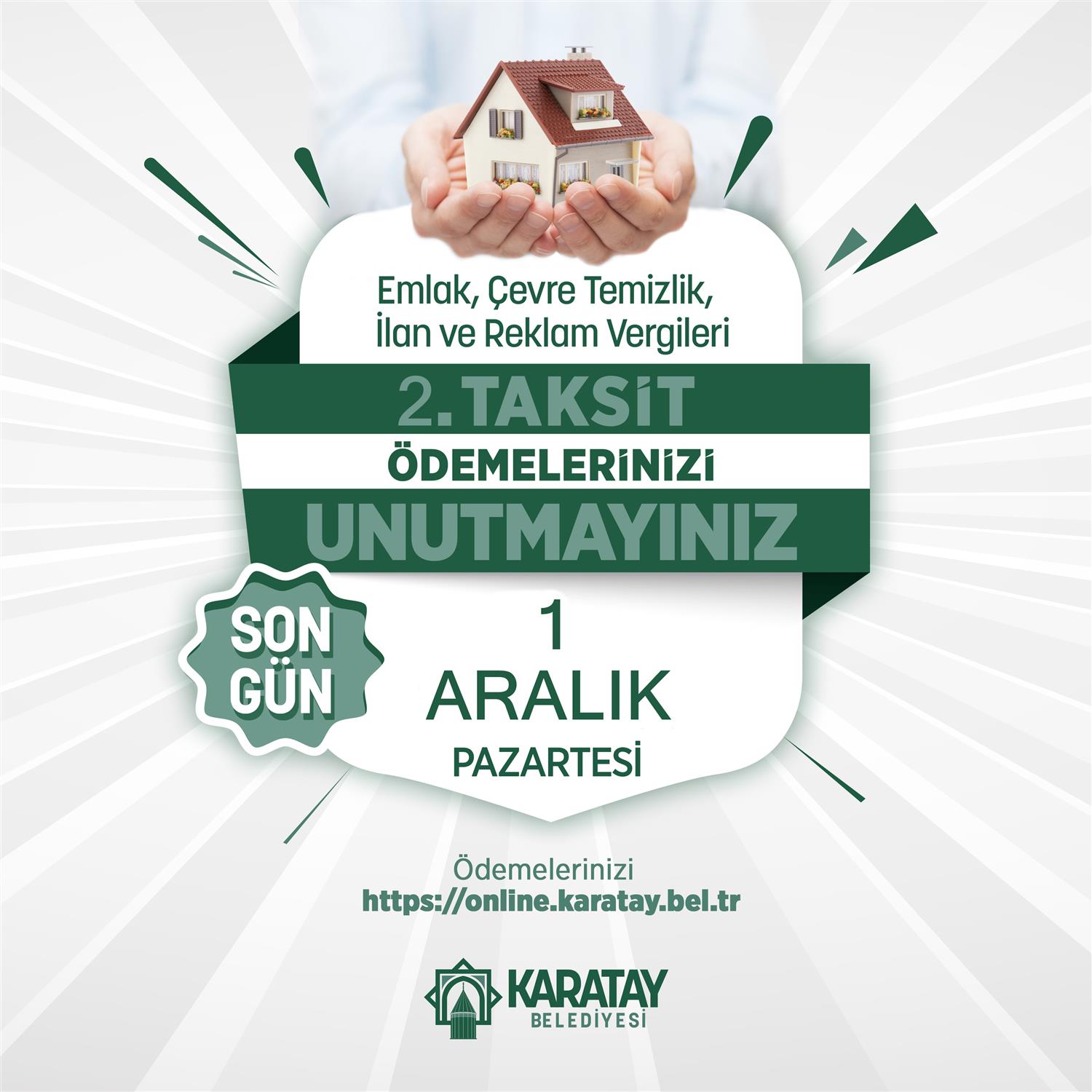 Açıklamada şu ifadelere yer verildi: "Vatandaşlarımız, 1 Aralık 2025 Pazartesi günü mesai bitimine kadar emlak, çevre temizlik ve ilan-reklam vergilerinin ikinci ve son taksitlerini; T.C. kimlik numarası veya mükellef sicil numarası ile Karatay Belediyesi hizmet binasındaki veznelere nakit veya kredi kartı ile ödeyebileceklerdir. Ayrıca ödemeler, https://online.karatay.bel.tr/#/odeme-islemleri/odeme-islemleri adresi üzerinden ve Karatay mobil uygulaması aracılığıyla kredi kartı veya banka kartı ile de yapılabilmektedir. Mükelleflerimizin gecikme zammına maruz kalmamaları ve herhangi bir mağduriyet yaşamamaları için ödemelerini süresi içinde tamamlamaları önemle rica olunur. Süresi içinde ödenmeyen vergilere, 6183 sayılı kanun gereğince gecikme zammı uygulanmaktadır.”