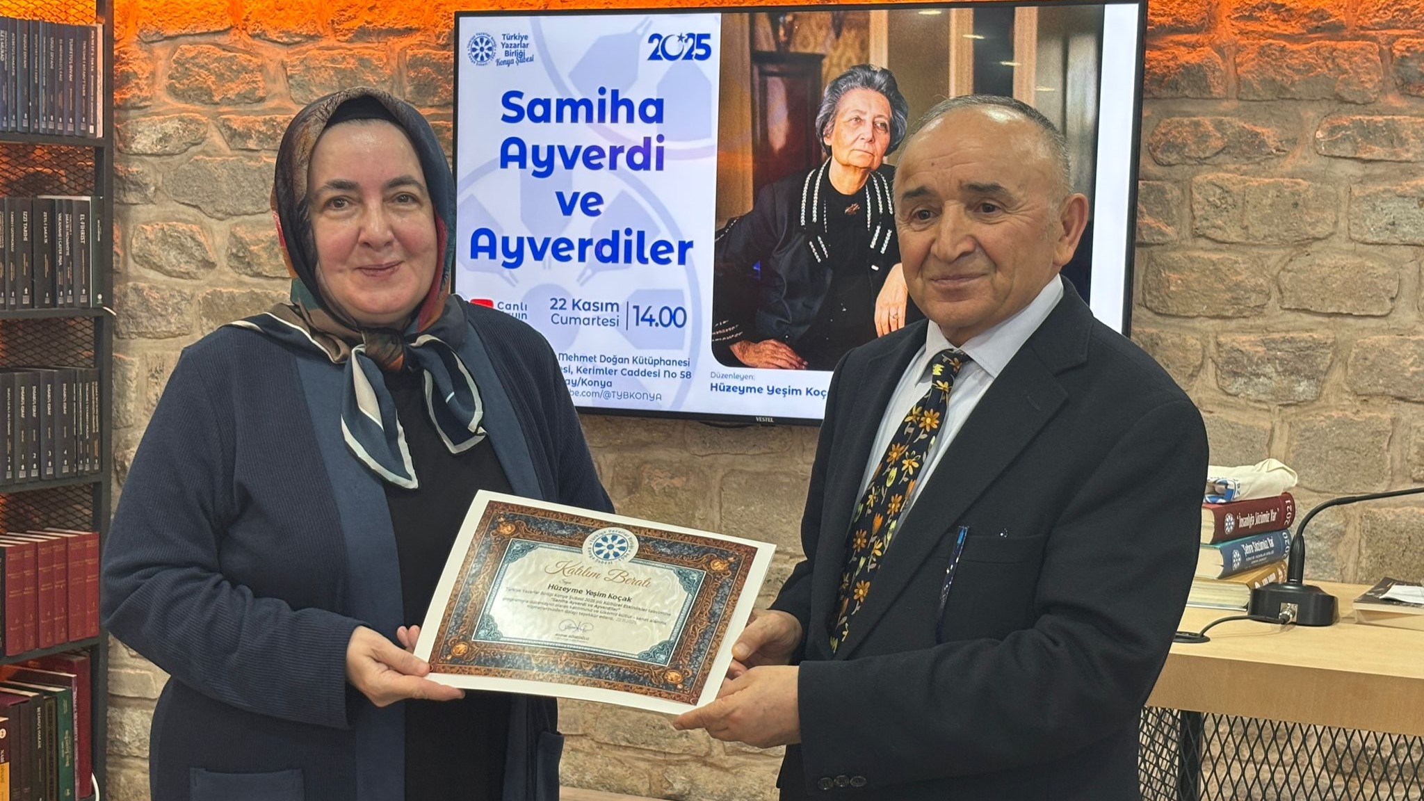 TYB Konya Şubesi D. Mehmet Doğan Kütüphanesi'nde "Samiha Ayverdi ve Ayverdiler” başlığıyla gerçekleştirilen konferansa, çok sayıda dinleyici katılırken sosyal medya kanalları üzerinden canlı yayını da yapıldı