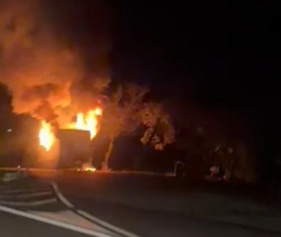 İhbar üzerine bölgeye çok sayıda itfaiye ekibi sevk edildi. Ekiplerin yangına müdahalesi ile söndürüldü. Tırın dorsesinde maddi hasar meydana geldi.