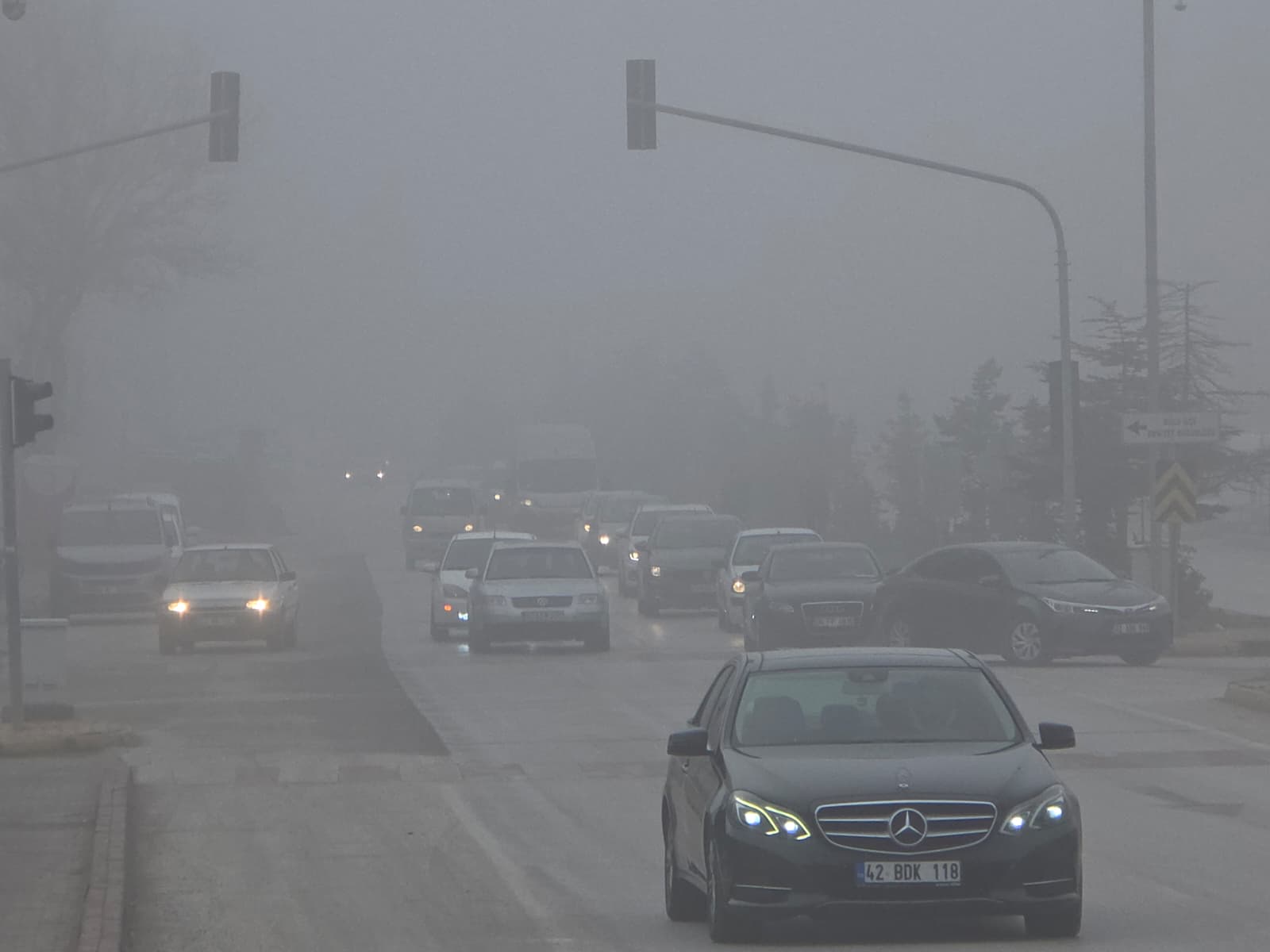 Konya’nın Kulu ilçesinde yoğun sis hayatı olumsuz etkiliyor. Sis nedeniyle görüş mesafesi 40 metreye kadar düştü.