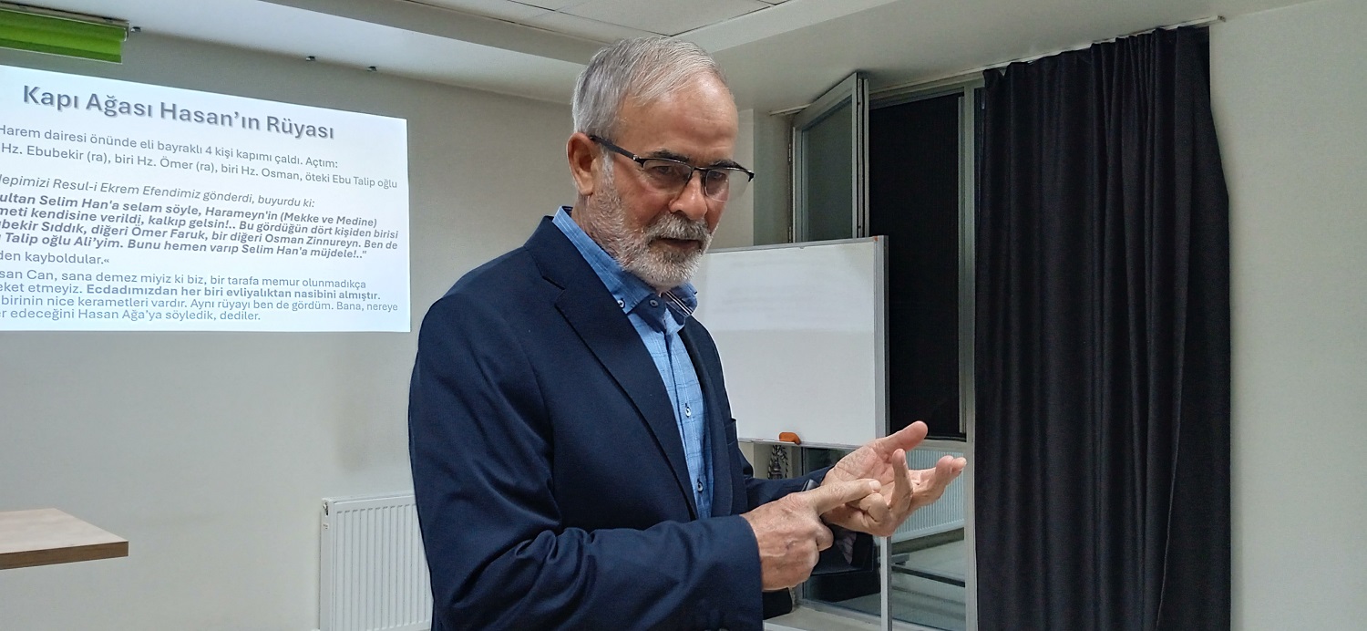 Sözlerine 1516'da kazanılan Mercidabık Zaferini anlatarak devam eden Kavaklı "Selim burada Mısır Sultanı Kansu Gavri ile savaşır ve Memlük ordusunu yenerek Halep'i aldıktan sonra iki hafta burada kalır. Sonra Şam'a hareket eder ve Şam savaşsız teslim olur. Selim, Şam'da kaldığı sıralarda Muhyiddin-i Arabî'nin Şeceretü'n-Numaniye Fi Tarih-i Osmaniye eserinde geçen (Sin Şın'a girince Mim'in kabri ortaya çıkar) ifadesini büyük âlim Kemal Paşazade ile birlikte yorumlayıp (Sin'in Selim'e, Şın'ın Şam'a, Mim”'n Muhyiddin'e işaret olduğu kanaatine varırlar. Bu arada Sultan, İbn Arabi'yi rüyasında görür ve ona (Ey Selim, senin gelmeni beklerdim. Safa geldin, hoş geldin. Mısır gazanı müjdelerim. Sabahleyin bir siyah ata bin, o seni bana getirir. Beni hâk-i mezelleten ‘horluk toprağından' kaldır. Bana bir türbe, bir cami ve imaret yapıver. Yürü işin rastgele, Mısır fethi müyesser ola!) der. Sultan, Ocak 1517'de Ridaniye'de Tomanbay'ın ordularıyla karşılaştı. Ridaniye zaferi Osmanlıya Mısır mülkünü kazandırdı. Gazze'de Veziriazam Sinan Paşa'ya karşı savaşan Canberdi Gazeli ve birçok Memluk emiri gelip teslim oldular. Sultan, 15 Şubat 1517'de parlak bir merasimle Kahire'ye girdi. Halk, Yavuz'un ihtişamını seyretmek için sokakları ve pencereleri doldurmuştu. Kalatü'l-Cebel'e kadar mehter eşliğinde geldi, buradaki Hz. Yusuf'un tahtına oturdu, Mısır sultanı oldu. Mekke, Medine, Cidde'ye fetih mektupları göndererek bağlılık göstermelerini istedi. Hilafet böylece Osmanlı Sultanı Yavuz Sultan Selim'e geçti. Fetihlerden haberdar olan İstanbul'da Sultan için görkemli bir karşılama töreni tertip edildiğini söyleyen Kavaklı, "Bunları öğrenen Selim Han gece vakti sessizce bir kayığa binerek bu şatafata itibar etmedi” ” diyerek sözlerini sürdürdü.
