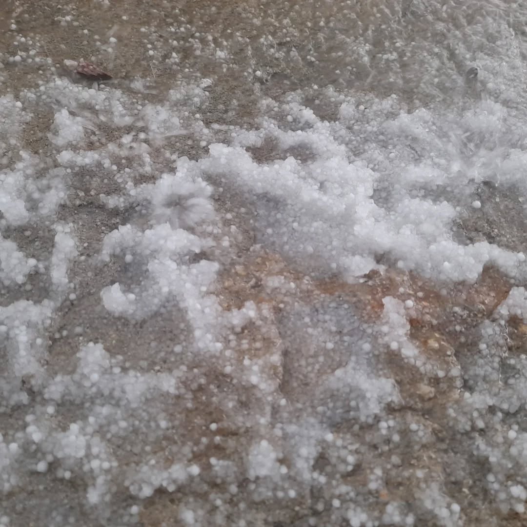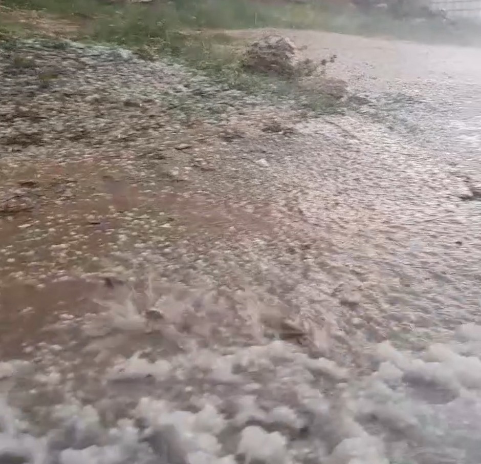 Yağış sırasında düşen dolu taneleri, mahallede zemini kısa sürede beyaza bürüdü. Vatandaşlar, yerde oluşan beyaz dolu birikintileriyle karşılaştı.