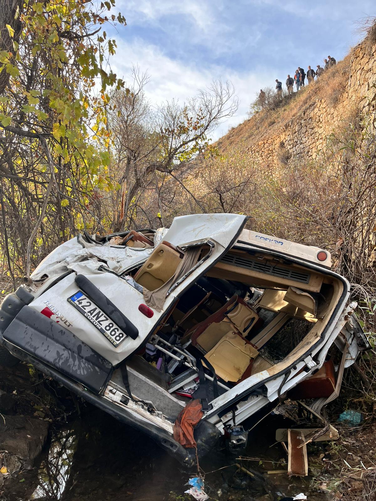 Hadim ilçesinde uçuruma yuvarlanan servis aracındaki 13 öğrenci ve şoför yaralandı.