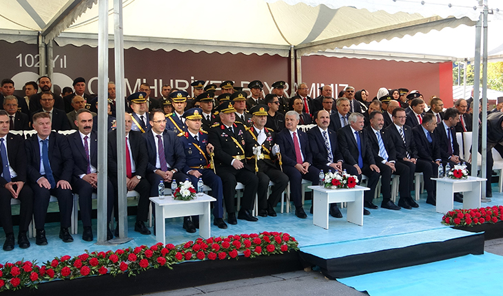 Daha sonra saygı duruşunda bulunularak, İstiklal Marşı okundu. Günün anlam ve önemine ilişkin bir konuşma yapan Vali İbrahim Akın, 29 Ekim Cumhuriyet Bayramı'nın 102. yılını kutlarayak, "Gazi Mustafa Kemal Atatürk'ü, silah arkadaşlarını, tüm şehit ve gazilerimizi rahmet, minnet ve hürmetle yad ediyorum" dedi.